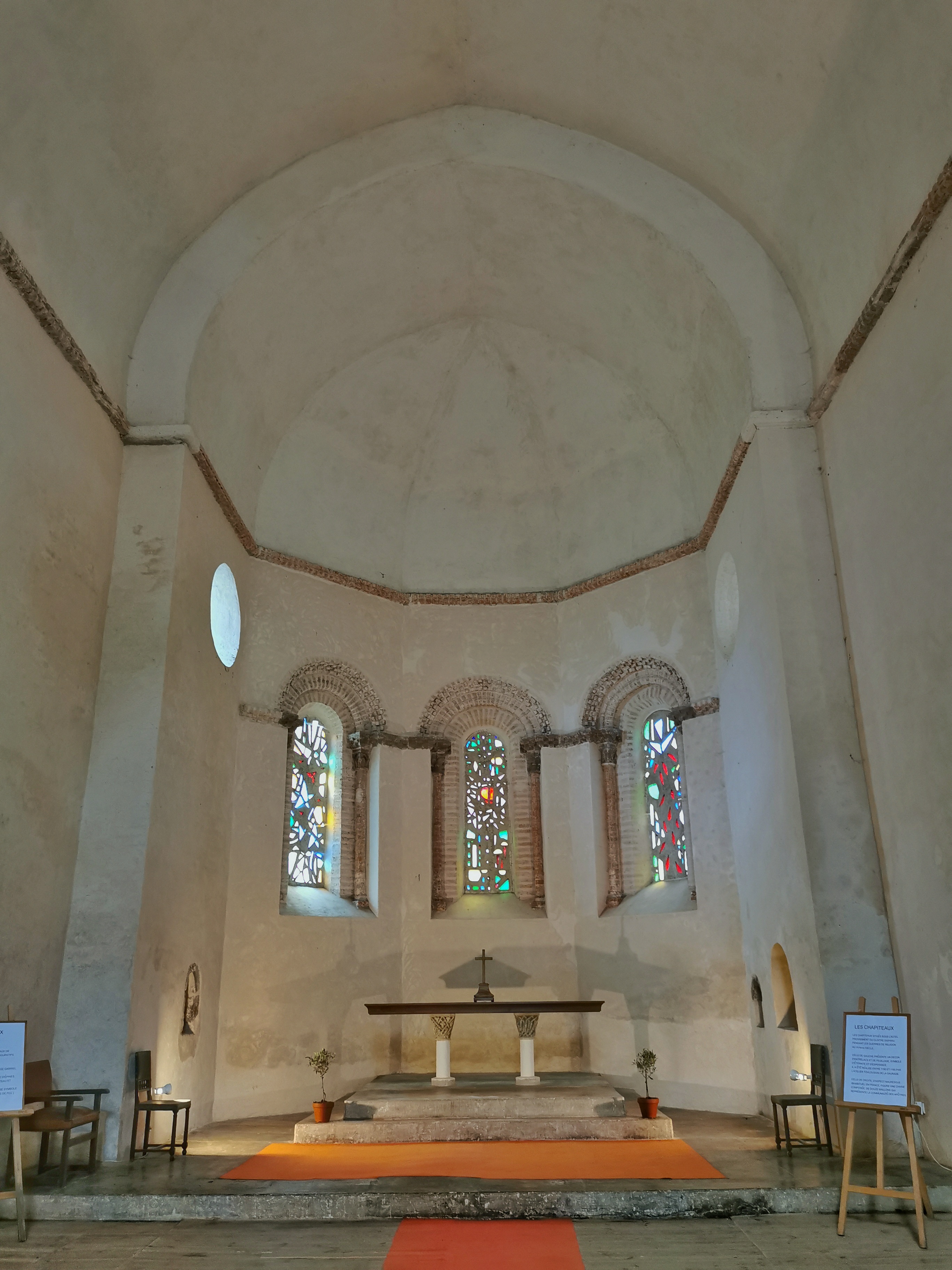 Des vitraux contemporains ornent l’église abbatiale.