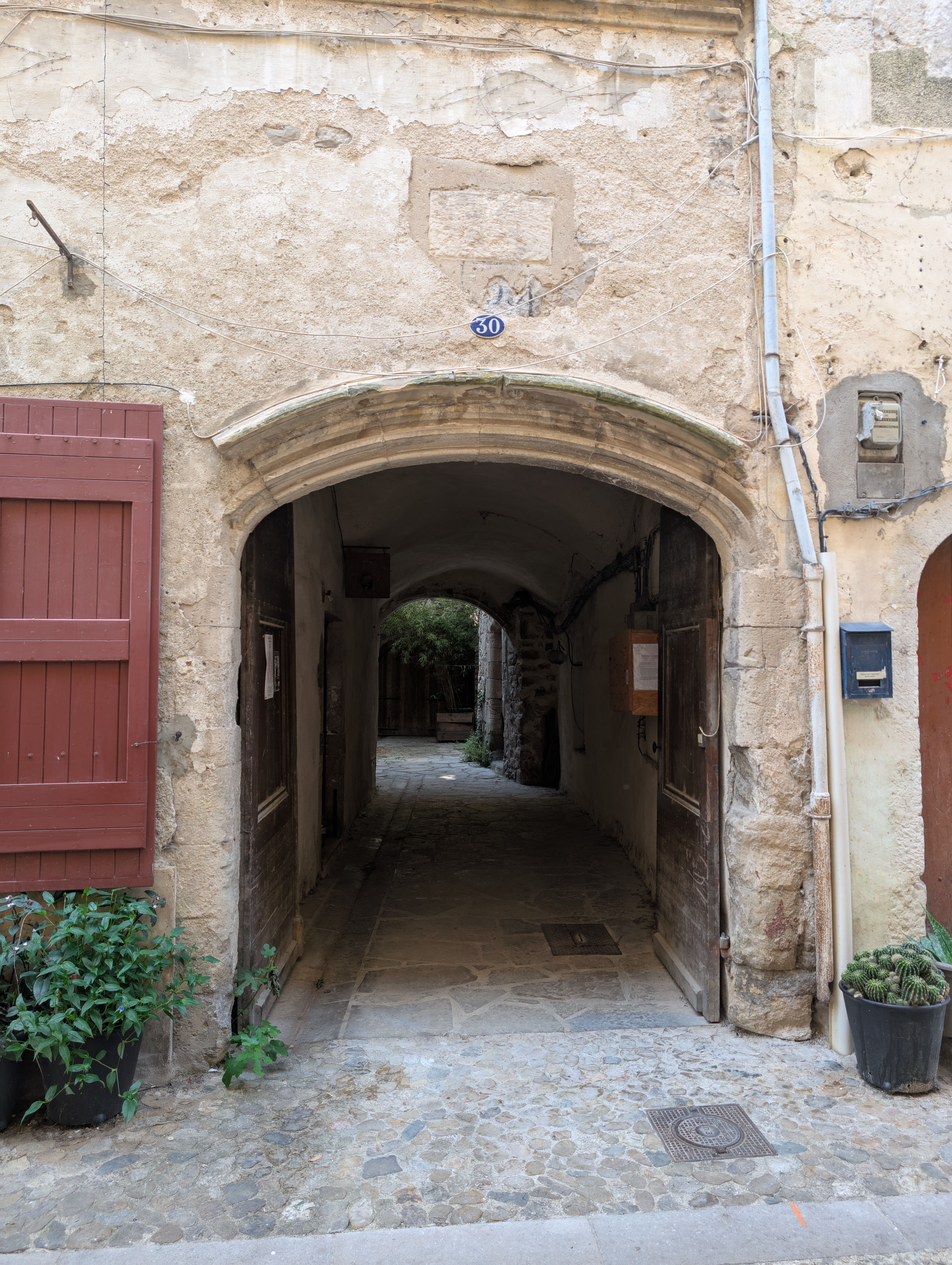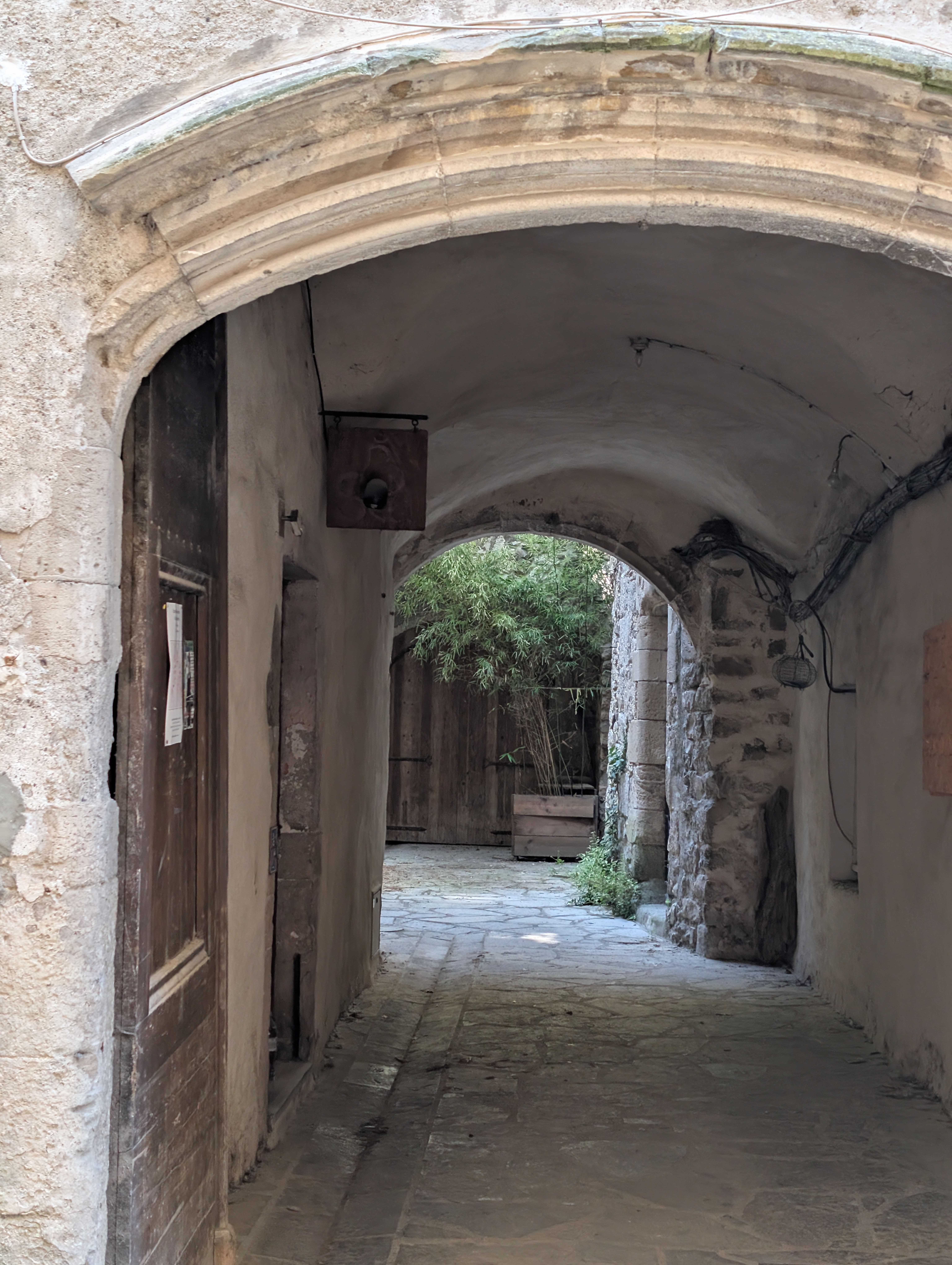 Retournez-vous et observez ce bâtiment, avec sa cour intérieure et son escalier à vis, couramment désigné comme une synagogue. Cette supposition n’est pas étayée à ce jour et le bain rituel, le miqveh, et le cimetière n’ont pas été localisés.