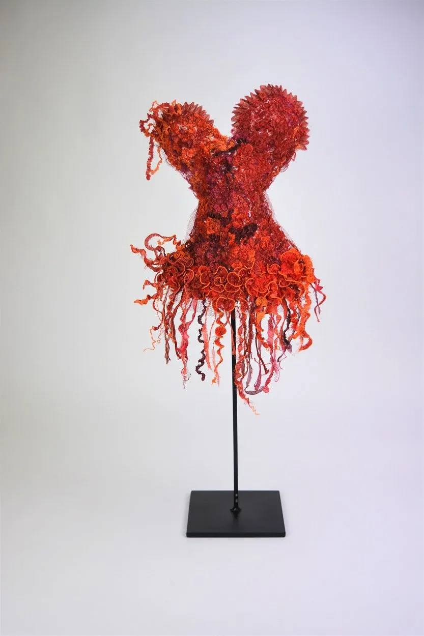 Je crée également des sculptures textiles à partir de mes matières plissées, transparentes, légères, dans lesquelles le corps et le vêtement deviennent un seul mouvement.