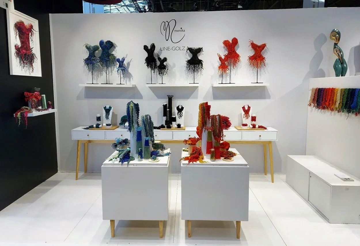 C’est un atelier de création textile, spécialisé en tissus plissés. Je fabrique essentiellement des accessoires de mode, foulards, mitaines, cols ou étoles, mais aussi des colliers, bracelets ou broches.