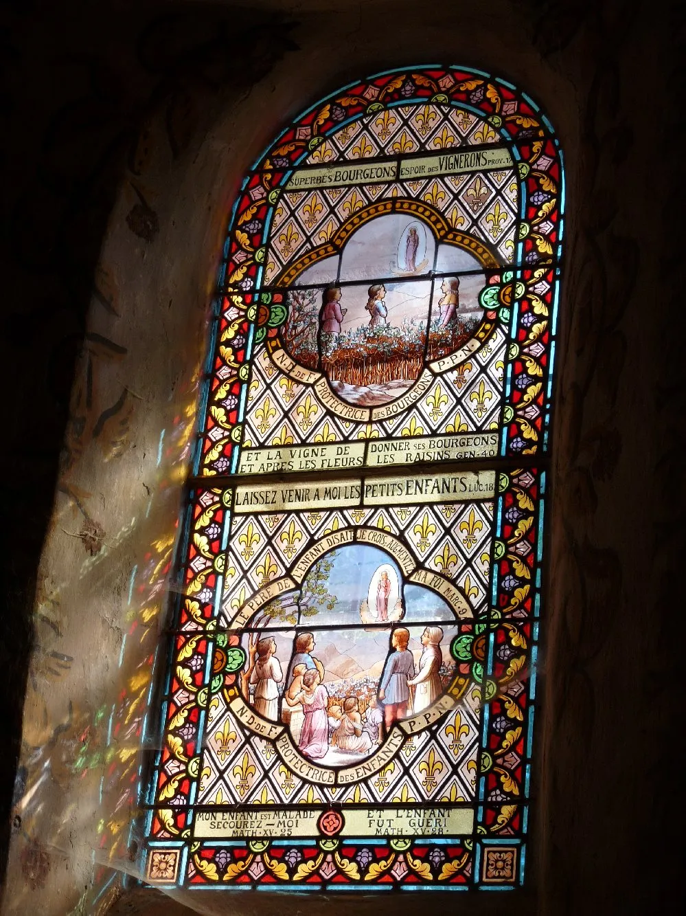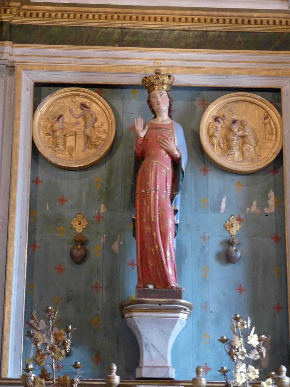 La statue de la Vierge en bois polychrome, dans l’attitude du Magnificat (une main sur le coeur, l’autre levée au ciel), vêtue d’une robe rouge, ornée de grappes de raisins et d’un manteau bleu est vénérée par les vignerons qui lui consacrent leurs vignes. Elle est aussi la protectrice des enfants.