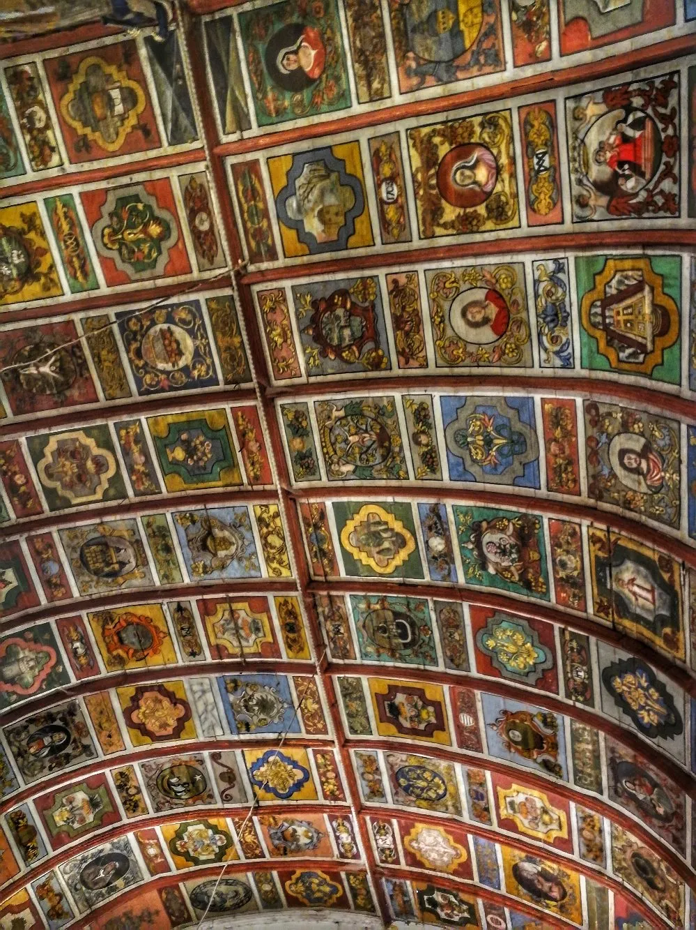 L’édifice roman a été modifié de nombreuses fois. Au 17° siècle, la chapelle est agrandie et entièrement décorée. A cette période le choeur et la voûte lambrissée de la nef furent entièrement recouverts de magnifiques peintures.