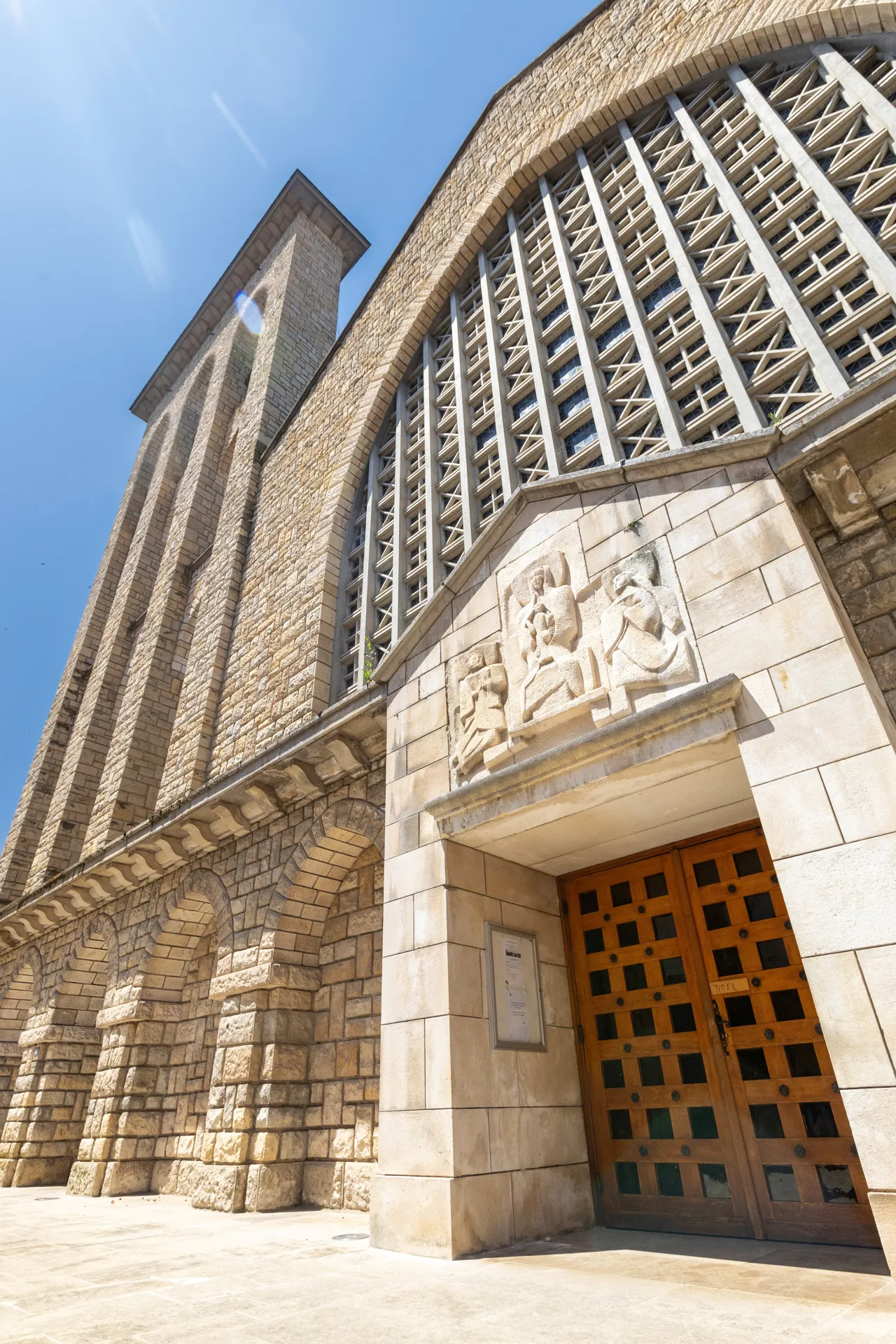 Inattendue et moderne, la chapelle abrite Sainte Emilie de Rodat, canonisée en 1950 par le pape Pie XII, et entourée par les oeuvres de quelques grands artistes contemporains, Philippe Kaeppelin, l’auteur du tympan, de l’autel et des hauts-reliefs, Jacques Bringuier pour la fresque dans la crypte, les vitraux de Gabriel Loire, singuliers ! Denys Puech pour le groupe sculpté ! Levez les yeux et regardez !