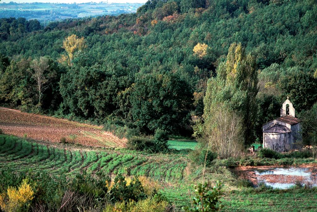 Sur le Chemin de Saint Jacques de Compostelle, dans un vallon au doux nom de « Combe du miel », se dresse cette jolie chapelle romane (XIè s., classée Monument Historique)