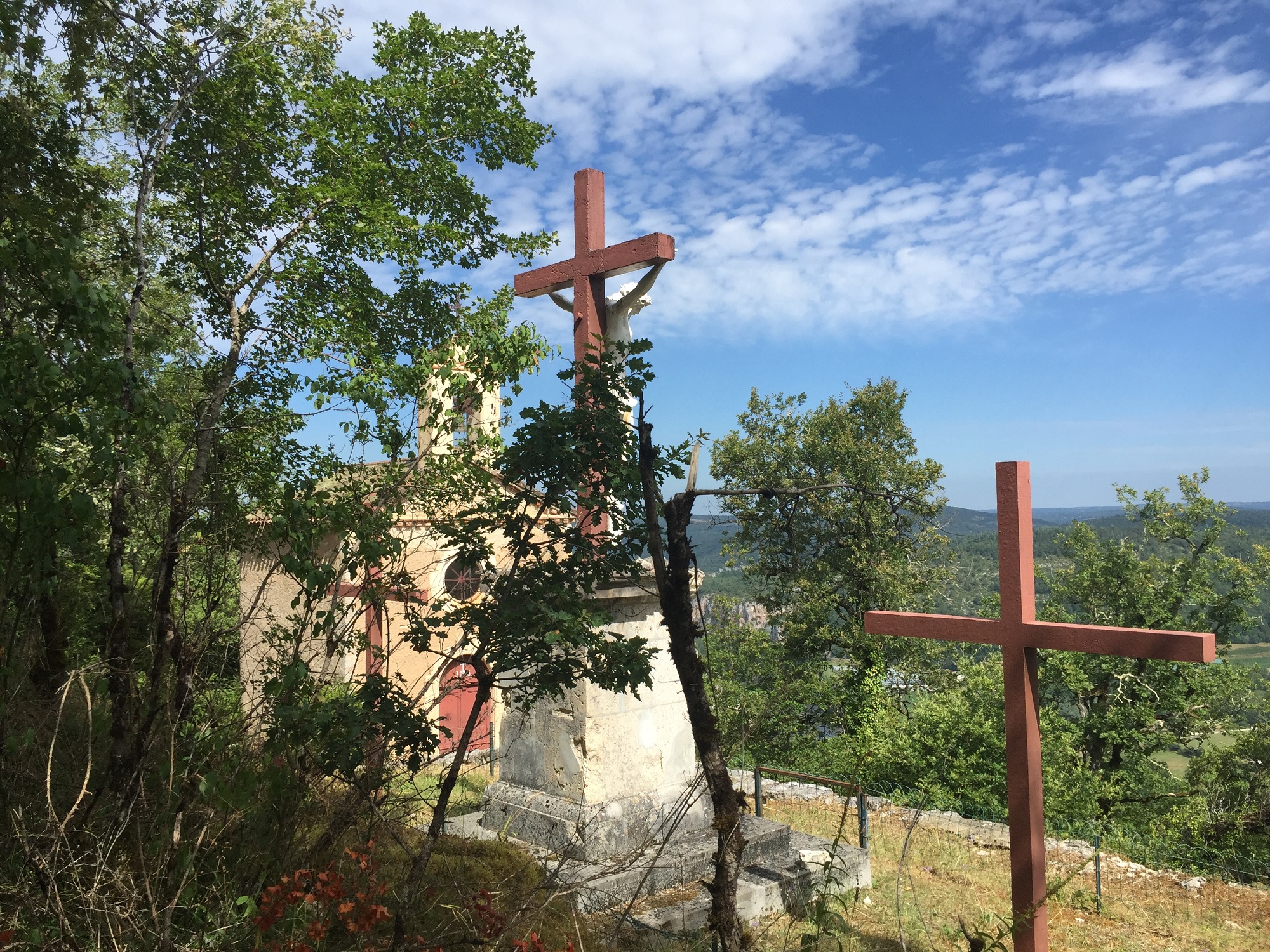 Le bâtiment, restauré au début des années 80, est doté d’une abside semi-circulaire et surmonté d’un clocheton. De l’arrière de la chapelle, une large vue s’ouvre sur les falaises de Coudoulous et le tracé de la rivière serpentant dans la profonde entaille déchirant les plateaux du causse. Le bâtiment ne se visite pas. Vous pouvez le voir de l’extérieur. Jolie point de vue depuis la Chapelle Sainte Croix sur le village de Saint-Cirq Lapopie. Prendre le GR 36 en direction de Concots et monter pendant 20min à pied jusqu’à la Chapelle. Sinon route accessible en voiture et marche de 2 minutes sur un chemin pour rejoindre la chapelle.
