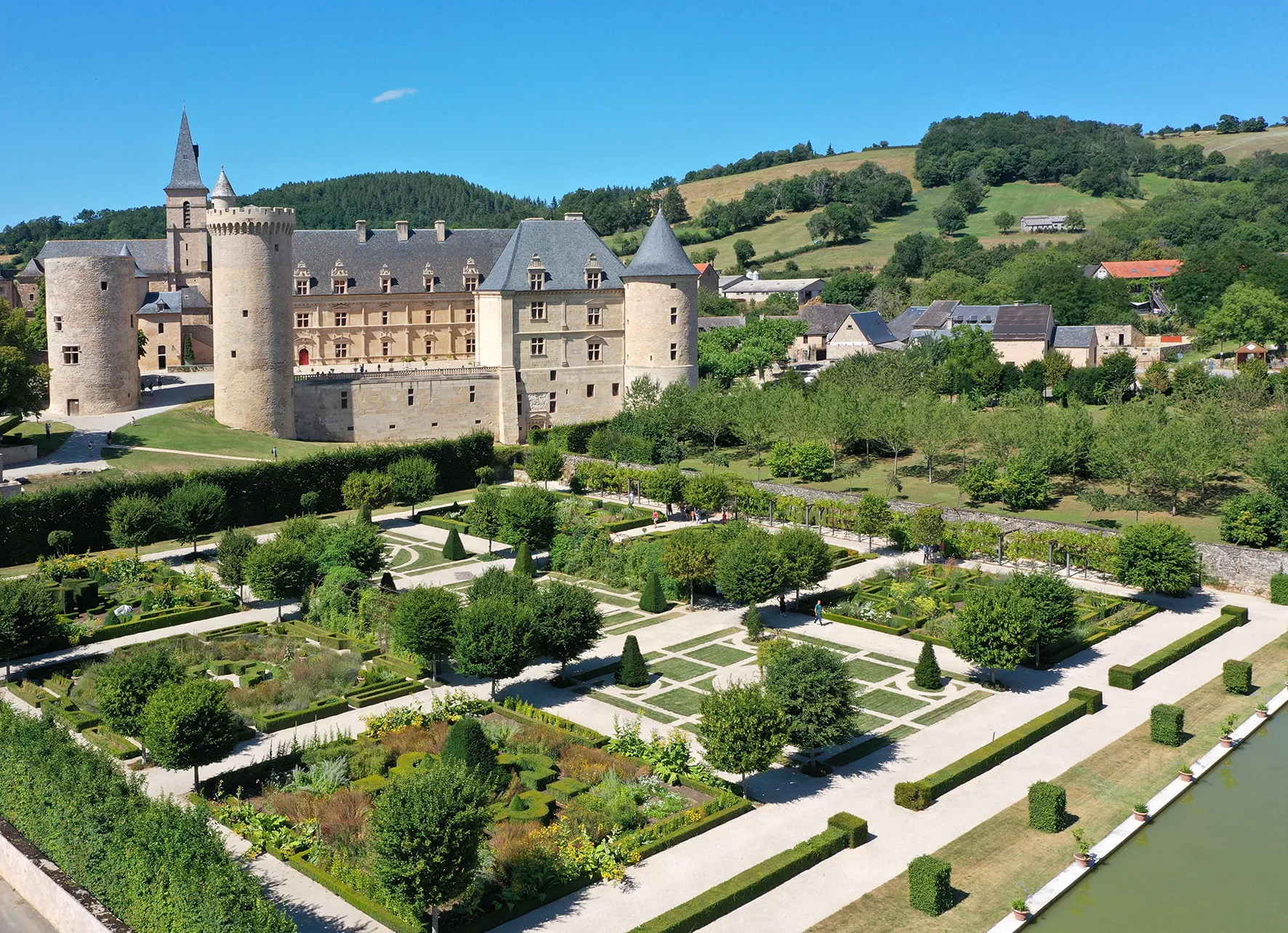 Fruit d’un long travail en archives et d’une campagne de fouilles archéologiques, la restauration des jardins de Bournazel offre un des rares exemples de jardin Renaissance en France. Le jardin clos comprenant neuf parterres thématisés sur l’éducation d’un prince fortuné et l’énigme de la vie, fontaines, vases, polyandrion, jardins de chambre aux cloisons de charmilles, verger, « Hortus Conclusus », labyrinthe, tonnelles et terrasses, pièce d’eau, dont l’organisation symbolique, littéraire et intellectuelle rappelle les ambitions de la Renaissance. Classé Jardin Remarquable depuis 2019.