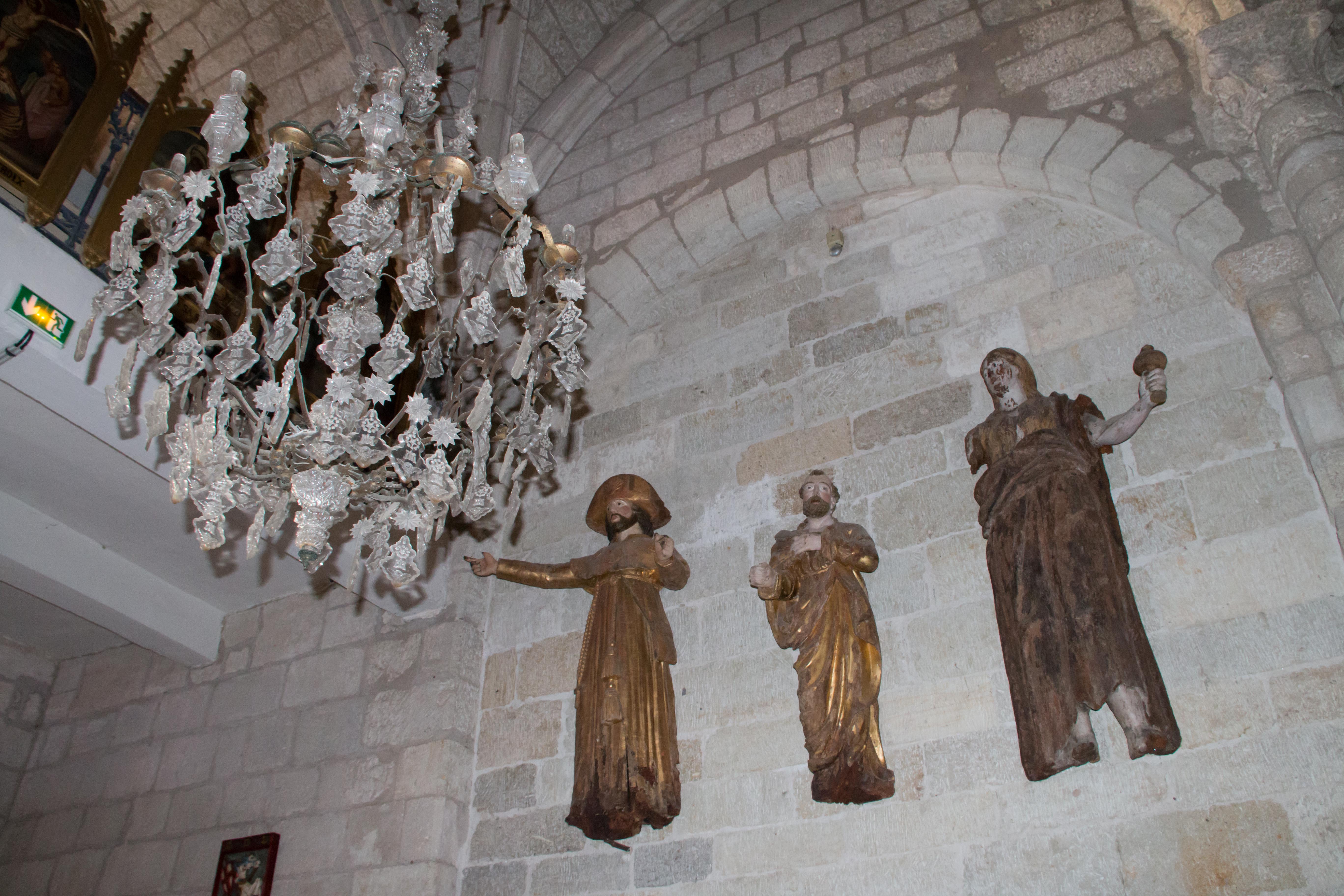 Ou encore le bénitier Wisigoth, les coquilles St Jacques peintes au plafond, célébrant le passage des pèlerins vers Compostelle.