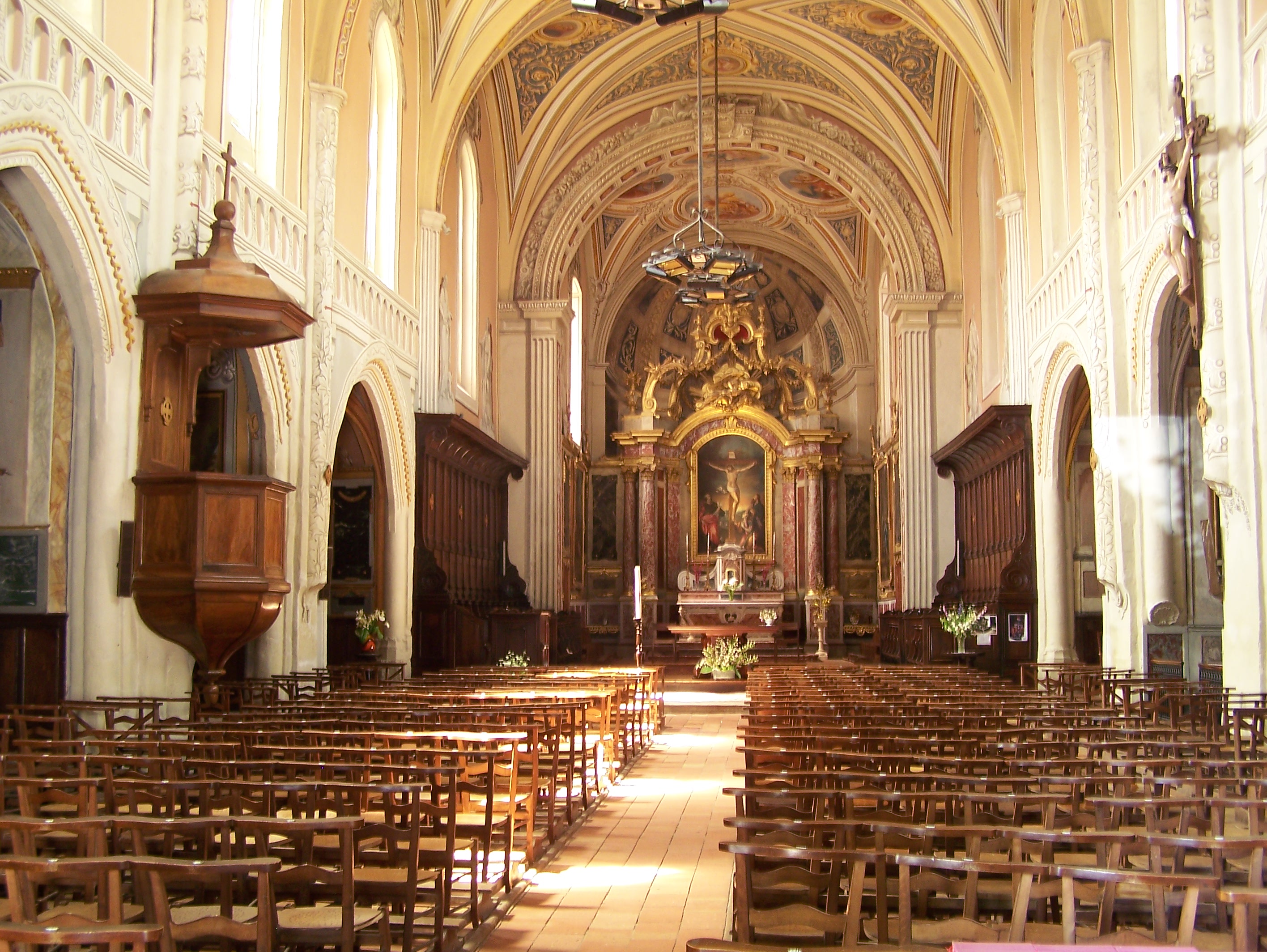 Laissez-vous surprendre par de somptueuses pièces comme le baldaquin de 13m de haut tout en bois doré, le lutrin ou encore la vierge de Montlausin qui se situait à l’origine dans l’ancienne chapelle des vicomtes de Lautrec.