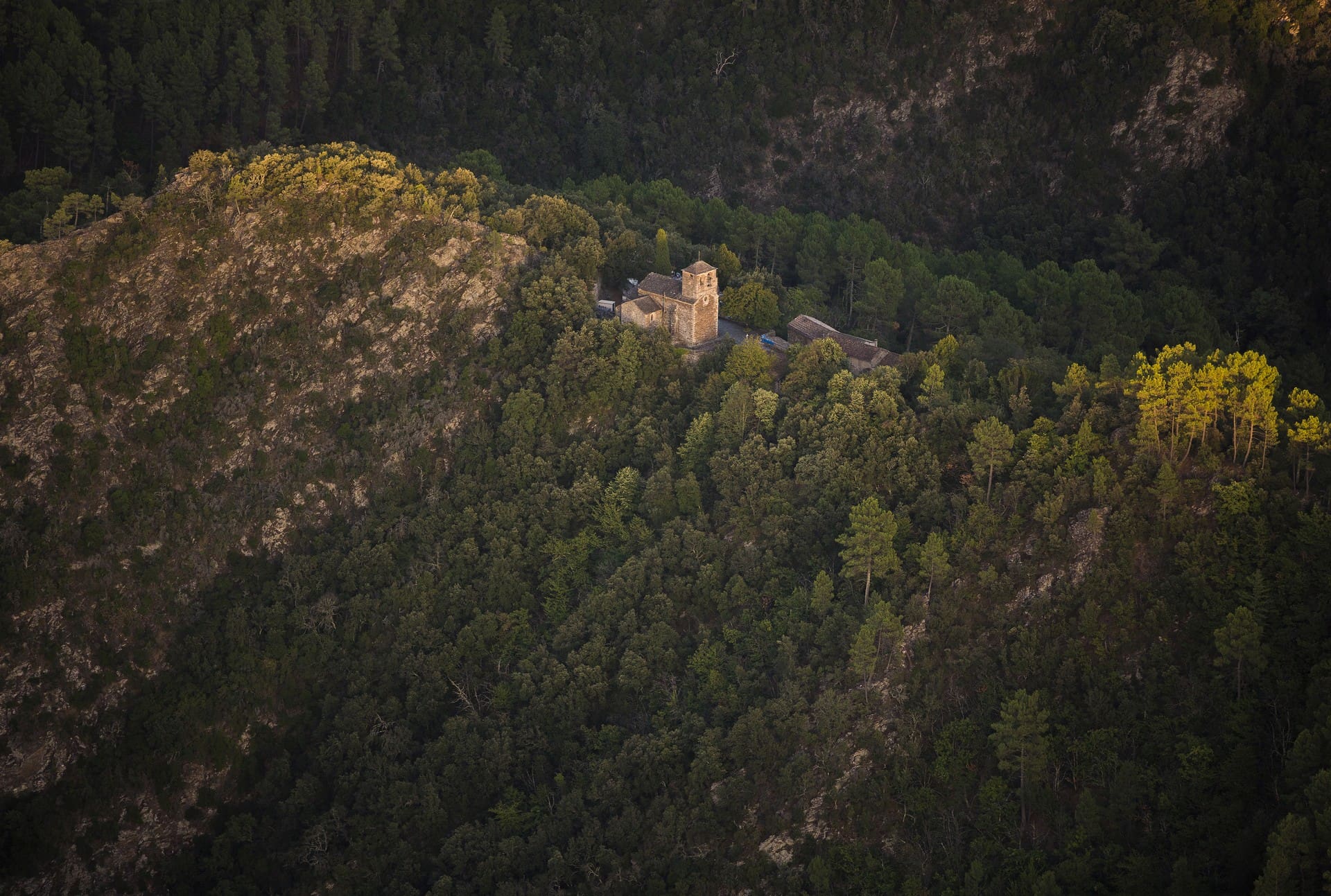 Perchée sur un éperon rocheux, l’église Notre-Dame de Peyremale domine la vallée.