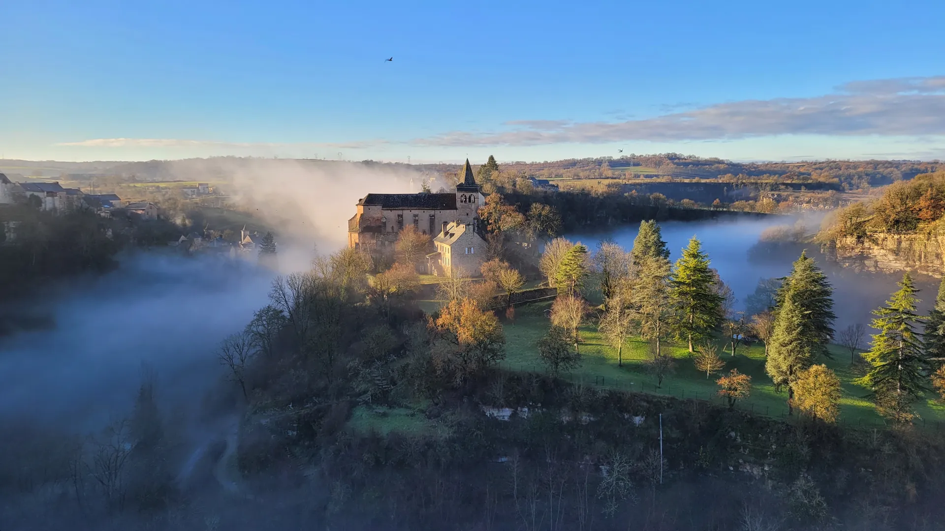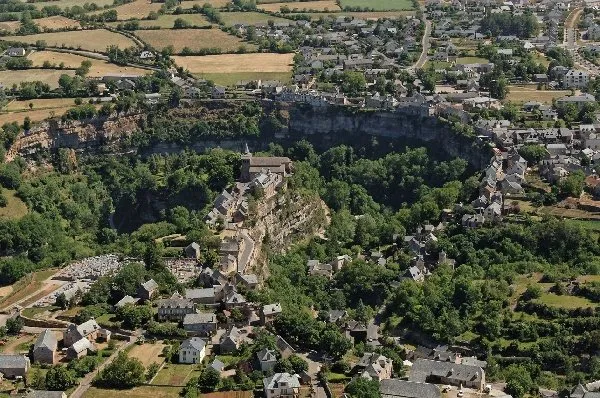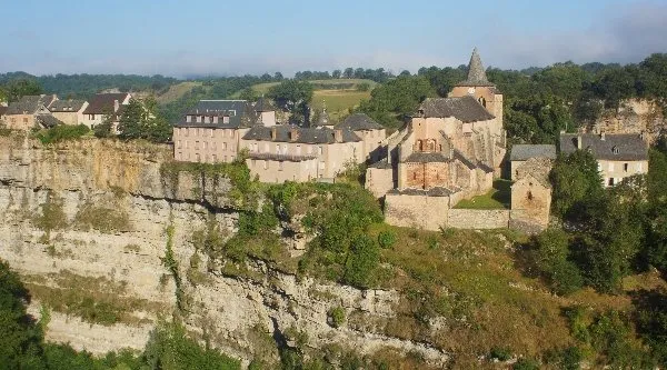 L’église Sainte Fauste est édifiée à l’extrémité d’un éperon rocheux qui domine, d’une hauteur vertigineuse, le cours du Dourdou qui décrit, à cet endroit, une large boucle. Aussi l’impression créée sur les hommes de son temps devait-elle être saisissante.