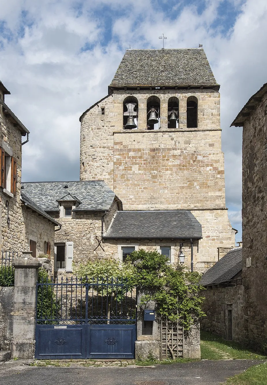 Son clocher peigne (14e s.) servit de donjon et de refuge.