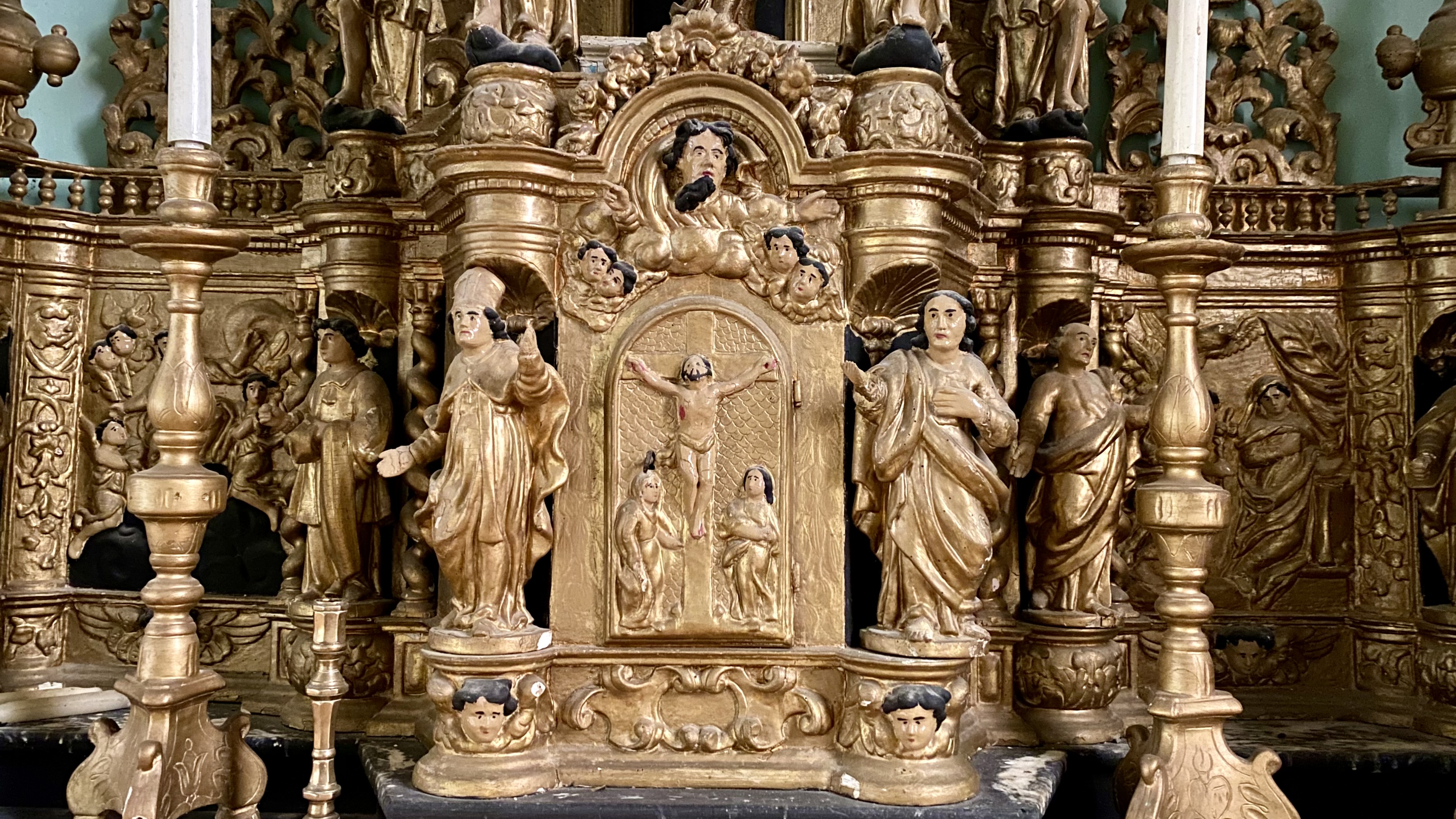 Le joyau du sanctuaire est son tabernacle-retable baroque, daté de la fin du XVIIe siècle et classé Monument Historique depuis 1979. Œuvre typique de l’atelier Soustre, il illustre les grandes étapes du Salut chrétien, de l’Incarnation à la Résurrection, dans un décor sculpté, peint et doré d’une grande richesse.