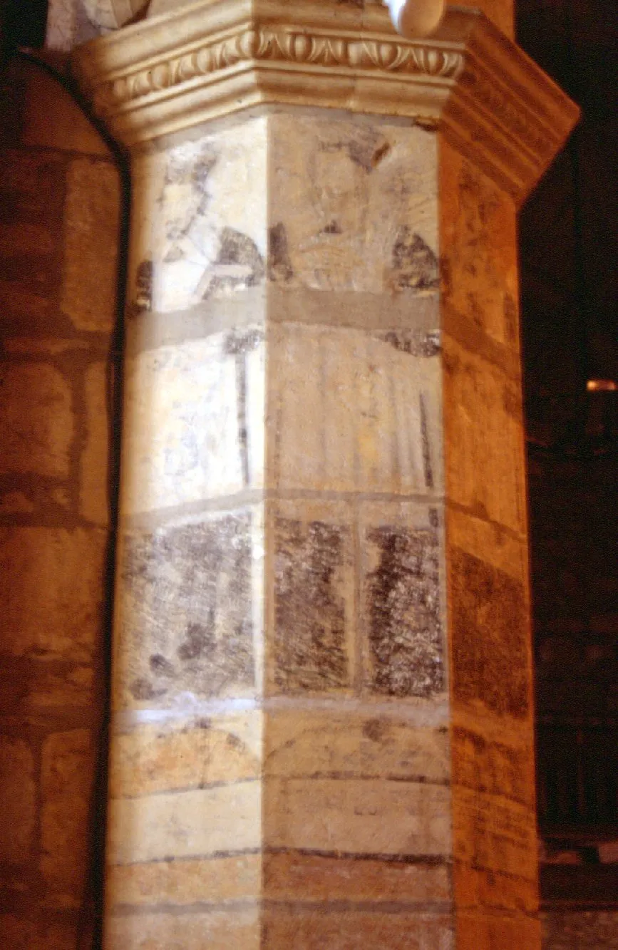 À l’intérieur, la chaire, composée de 6 blocs de pierre, a été conservée. Des fresques sont encore visibles sur certains murs.