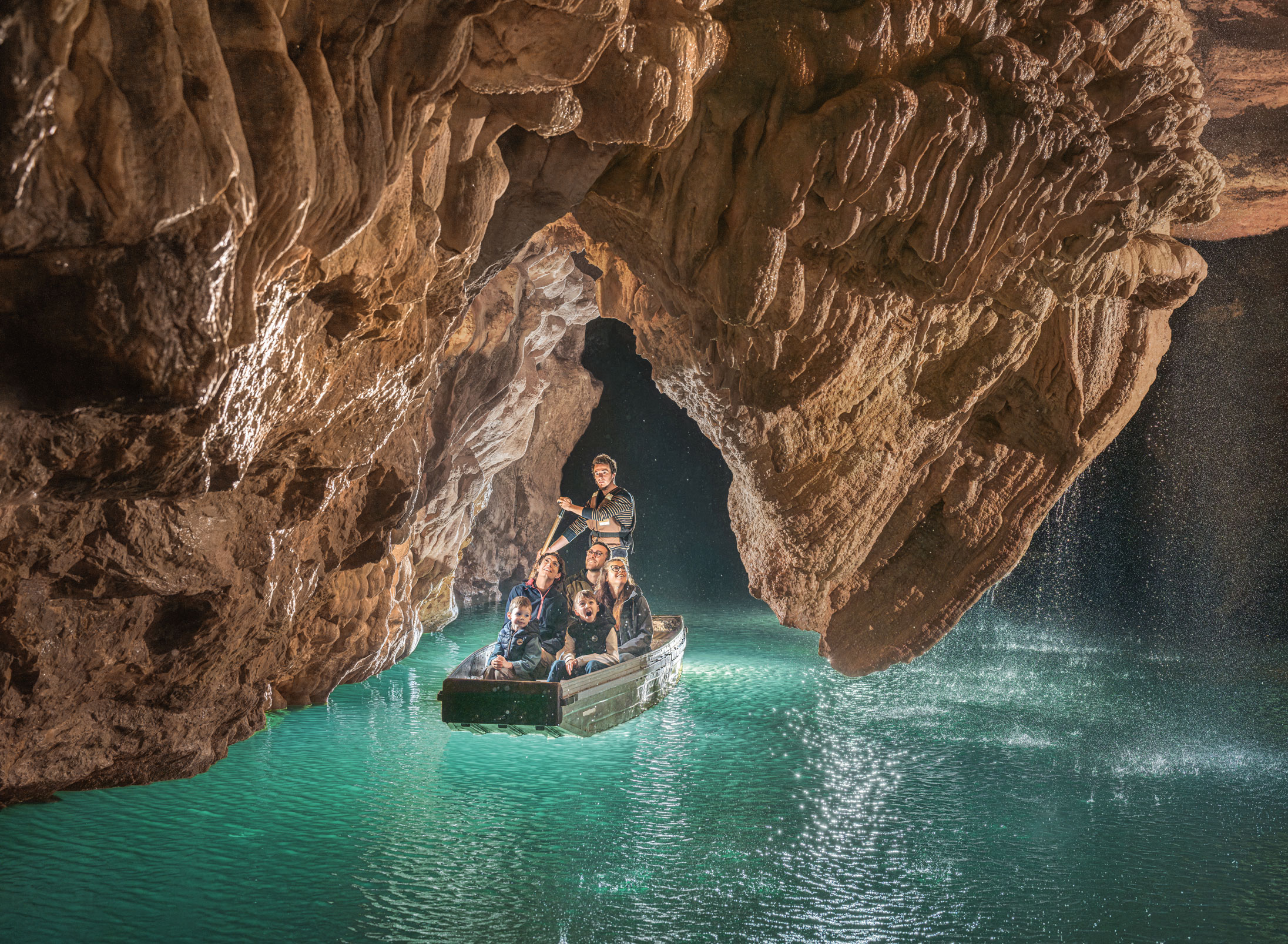 Embarquez, ici se vit l’extraordinaire ! Premier site du patrimoine naturel souterrain français, cette cavité naturelle de 33 mètres de diamètre et 75 mètres de profondeur vous ouvre les portes d’un incroyable voyage au centre de la Terre. En ascenseur ou par l’escalier, plongez au cœur d’un Gouffre luxuriant jusqu’à atteindre 103 mètres de profondeur. Explorez ensuite les vastes galeries avant d’embarquer sur la rivière souterraine avec nos guides-bateliers. Cette traversée vous mènera vers une multitude de merveilles géologiques sculptées par la nature depuis des millions d’années et découvertes en 1889. Venez vivre une incroyable aventure souterraine !