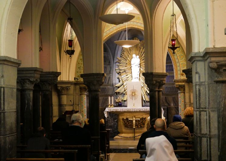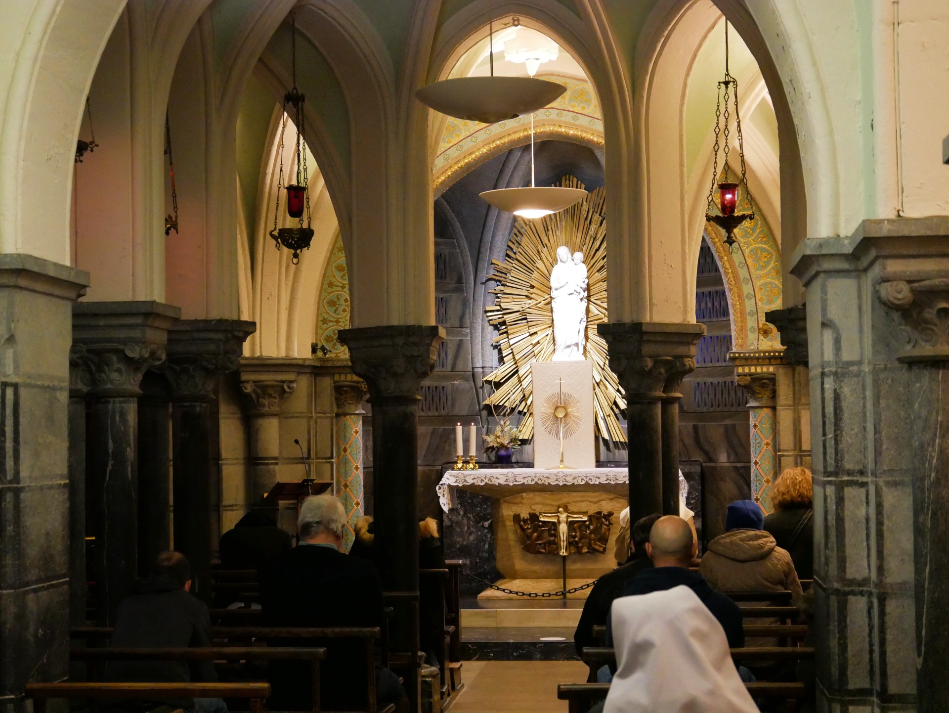 La crypte est située exactement au-dessus de la Grotte elle soutient le chœur de la basilique de l’Immaculée Conception aussi appelée basilique Supérieure. Entre la basilique Supérieure et la basilique du Rosaire, c’est la première église construite dans le Sanctuaire. La seule qu’ait connu Bernadette, la jeune voyante. De style néo-gothique, elle fut construite par l’architecte Hippolyte Durand et inaugurée le 19 mai 1866. Elle a une capacité de 120 places. A l’entrée, on s’arrête pour caresser le pied droit de saint Pierre, copie conforme de la statue de bronze de la basilique Saint-Pierre de Rome. A droite, on peut visiter la chapelle Saint-Michel pour vénérer des reliques de sainte Bernadette, morte au couvent de Nevers où repose son corps. Avant d’entrer dans ce lieu confidentiel, idéal pour se recueillir, on traverse un long couloir aux murs entièrement recouverts d’ex-votos, représentant les remerciements à la Vierge.