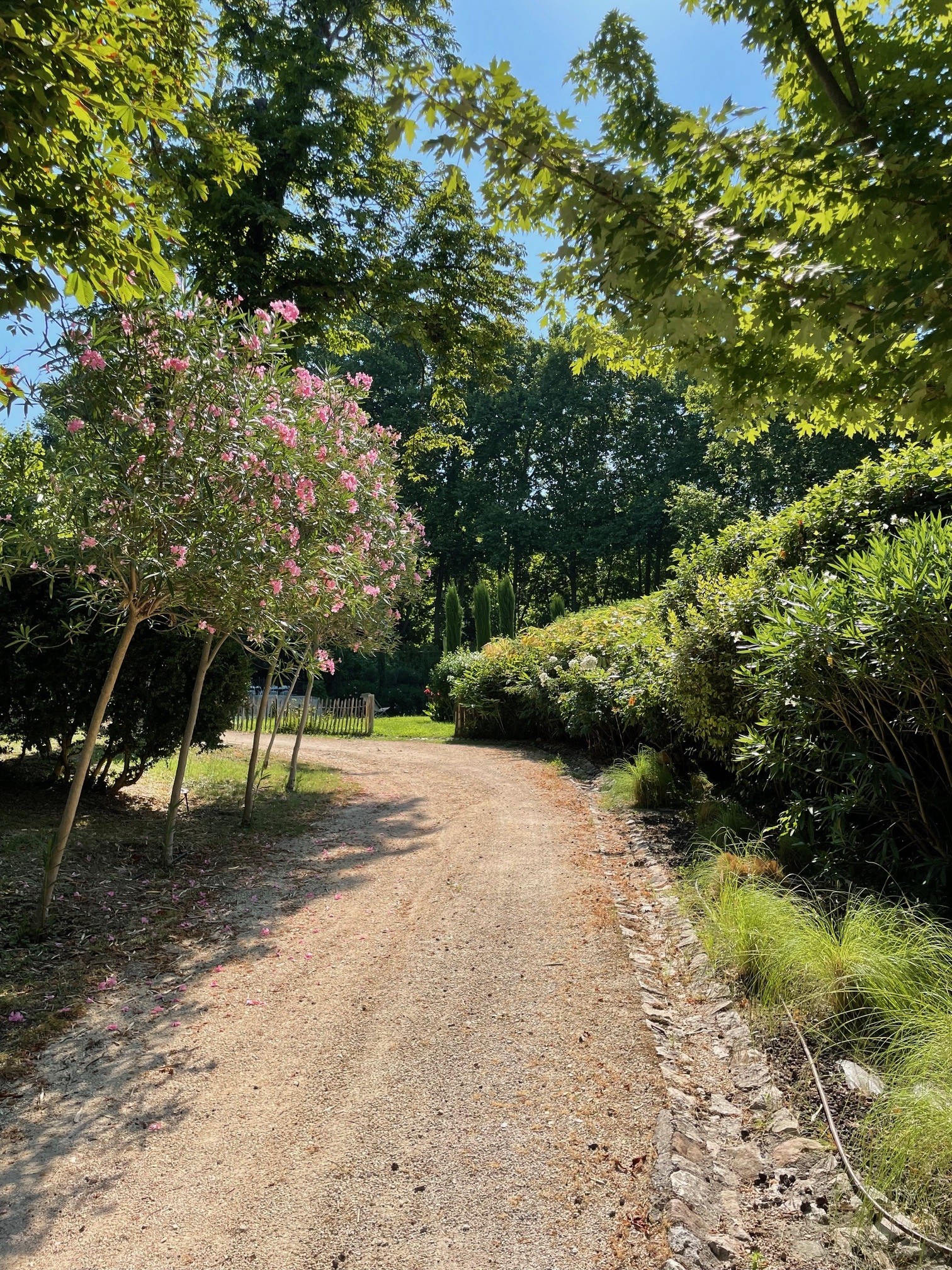Ce jardin laissé à l’abandon pendant 50 ans a été restauré et profondément remanié par Emmanuel de Sauveboeuf, paysagiste et botaniste, notamment avec la création d’un labyrinthe planté de 1200 oliviers pyramidaux. Une centaine de variétés d’arbres, certaines rares, est venue compléter les sujets anciens et majestueux existants. La plupart des plantes et arbres est étiquetée.