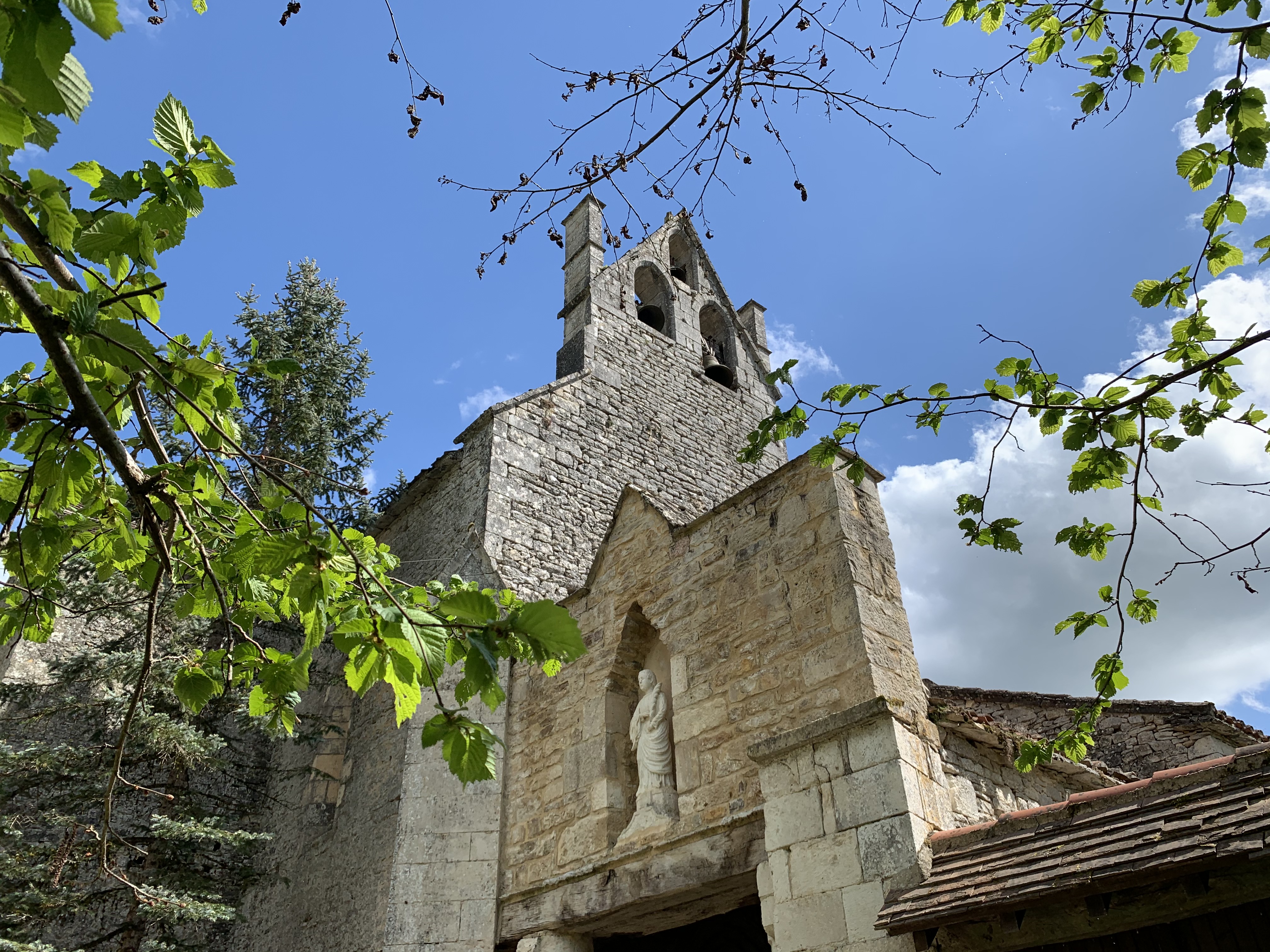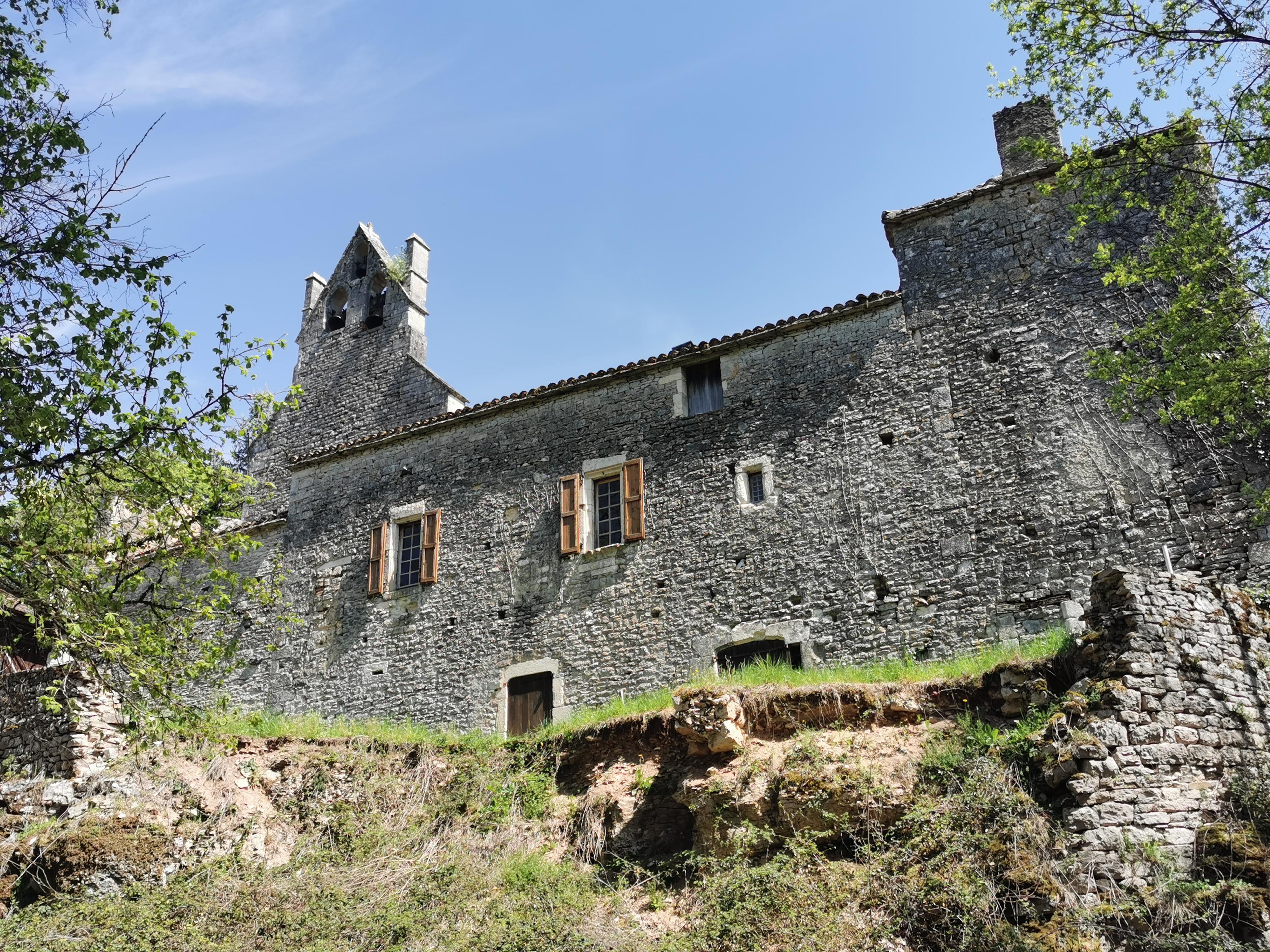 Cette église est étonnante de par ses plafonds bicolores et surtout par sa situation géographique. Son choeur est construit sur la commune de Caylus, et sa nef est sur la commune de Puylaroque.