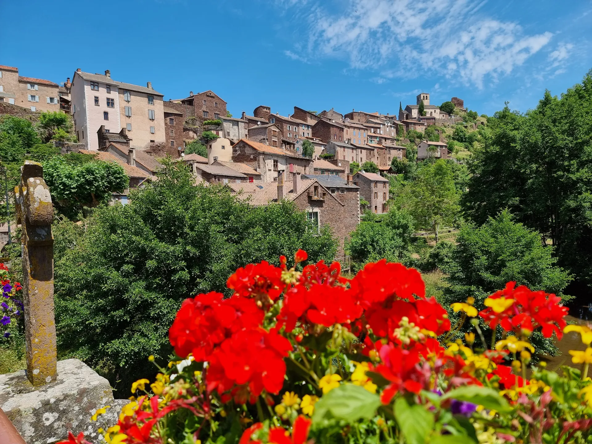 Depuis la rivière s’agrippent les maisons de grès rouge et les ruelles escarpées de ce bourg médiéval. Classé « Petite Cité de Caractère », Combret n’a rien perdu de son âme.