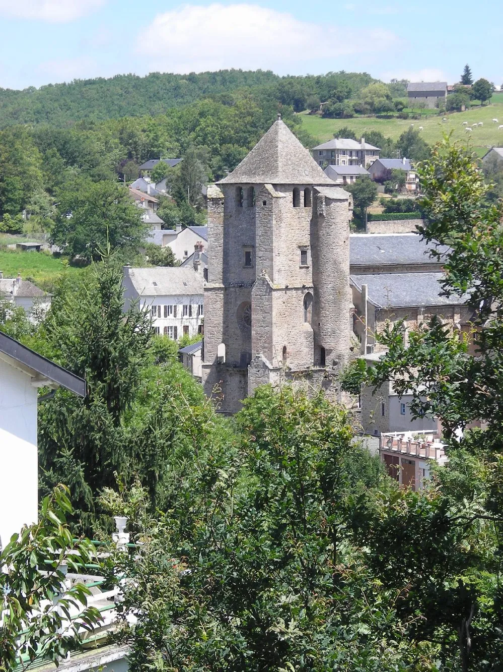 En 1471, après l’invasion anglaise, l’évêque de Rodez décida de construire un clocher fortifié en y rattachant une nouvelle église (la dernière ayant été pillée). Adossé à la petite église du XIIIème siècle, il s’intégrait avec ses créneaux dans la ceinture des remparts et servait de poste de surveillance du haut de ses 44 mètres.