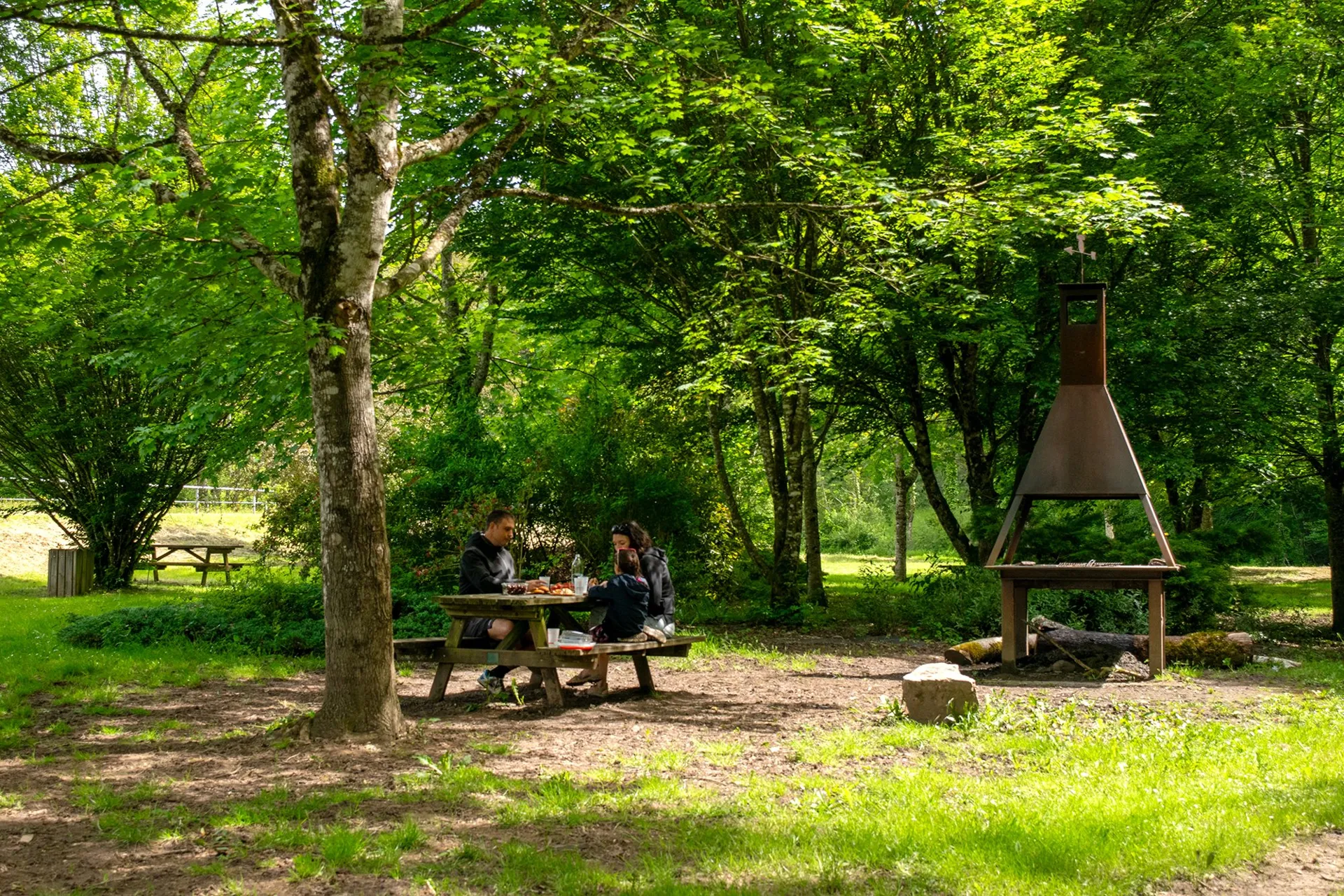 Tables de pique-nique et barbecue en dur vous attendent. Il vous faudra juste prévoir le charbon de bois… et les grillades ! Profitez de ce bel écrin de verdure pour déguster vos préparations.