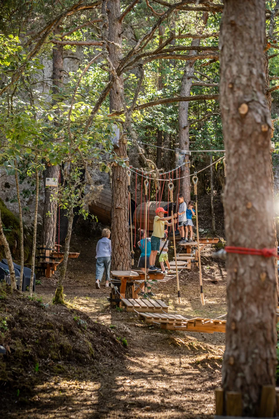 Envie d’une pause ? Profitez des espaces zen au cœur des rochers, tandis que les plus jeunes s’amusent sur le mini accrobranche !