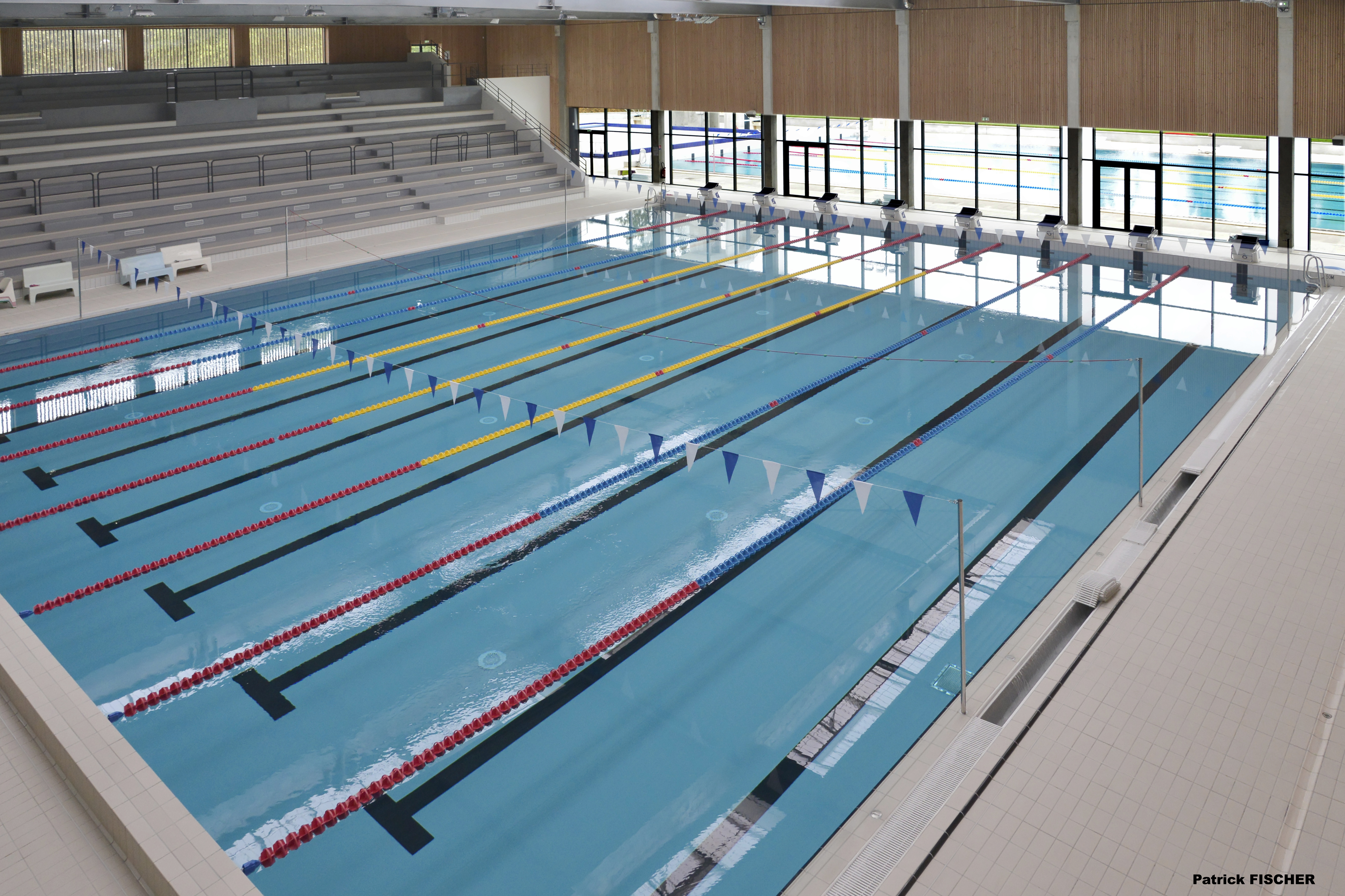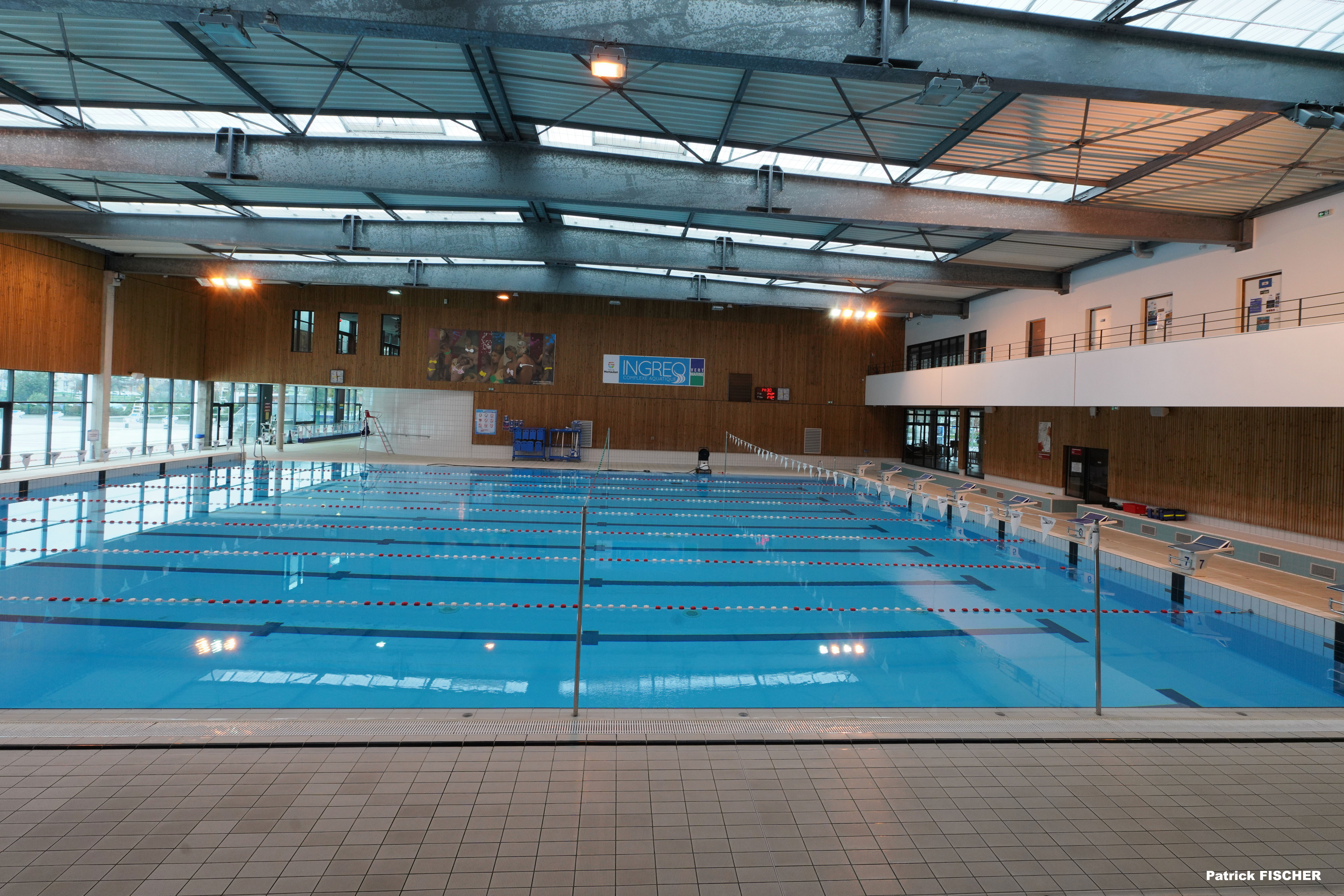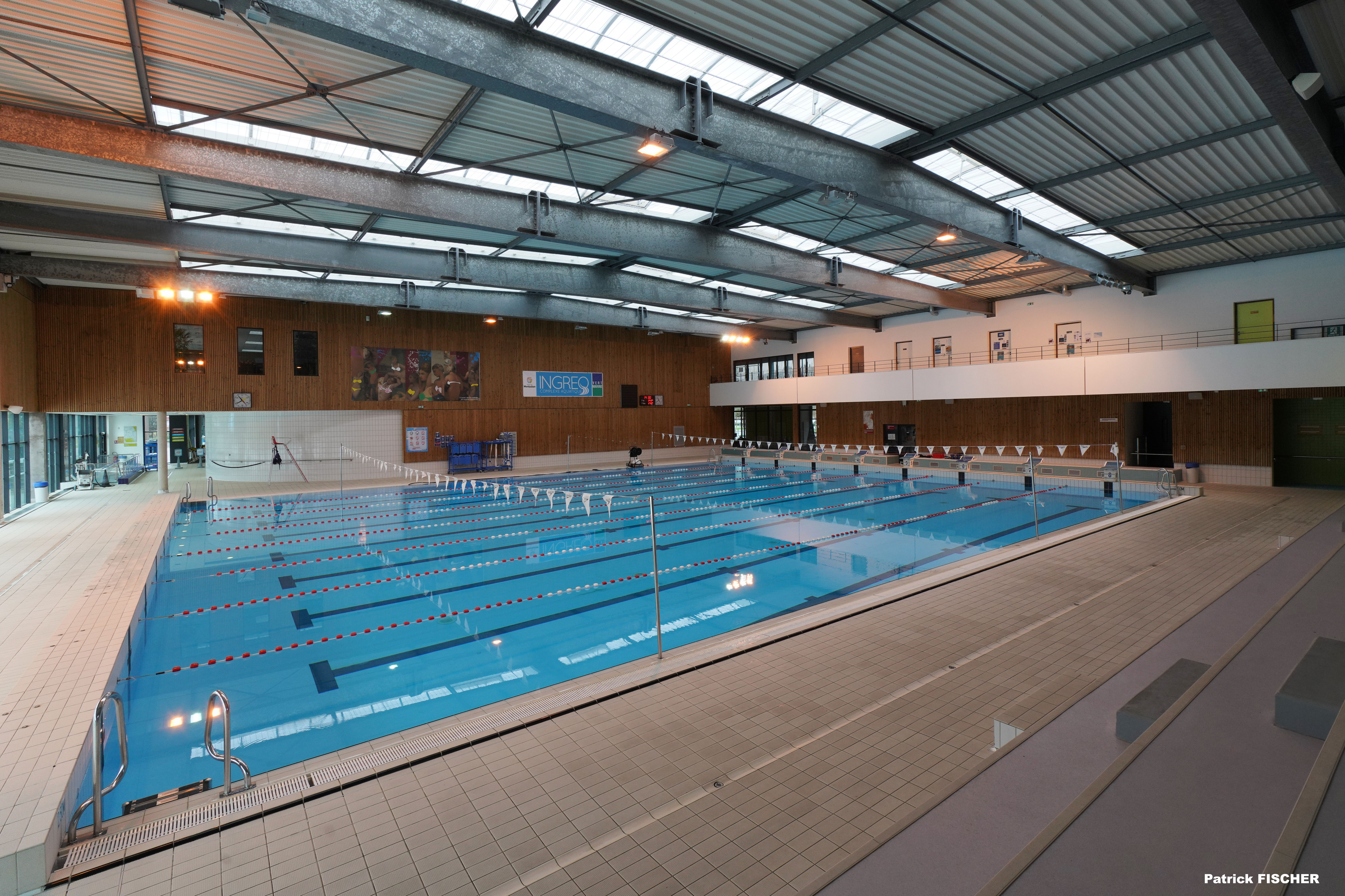 • Équipements disponibles : Repères de virage dos / 2 plots de départ par ligne / Chaines de flotteurs aux normes de la FINA / Système audio (amplificateur, table de mixage, lecture, etc.) / Système de haut-parleur dans le hal / Système de haut-parleur immergé
