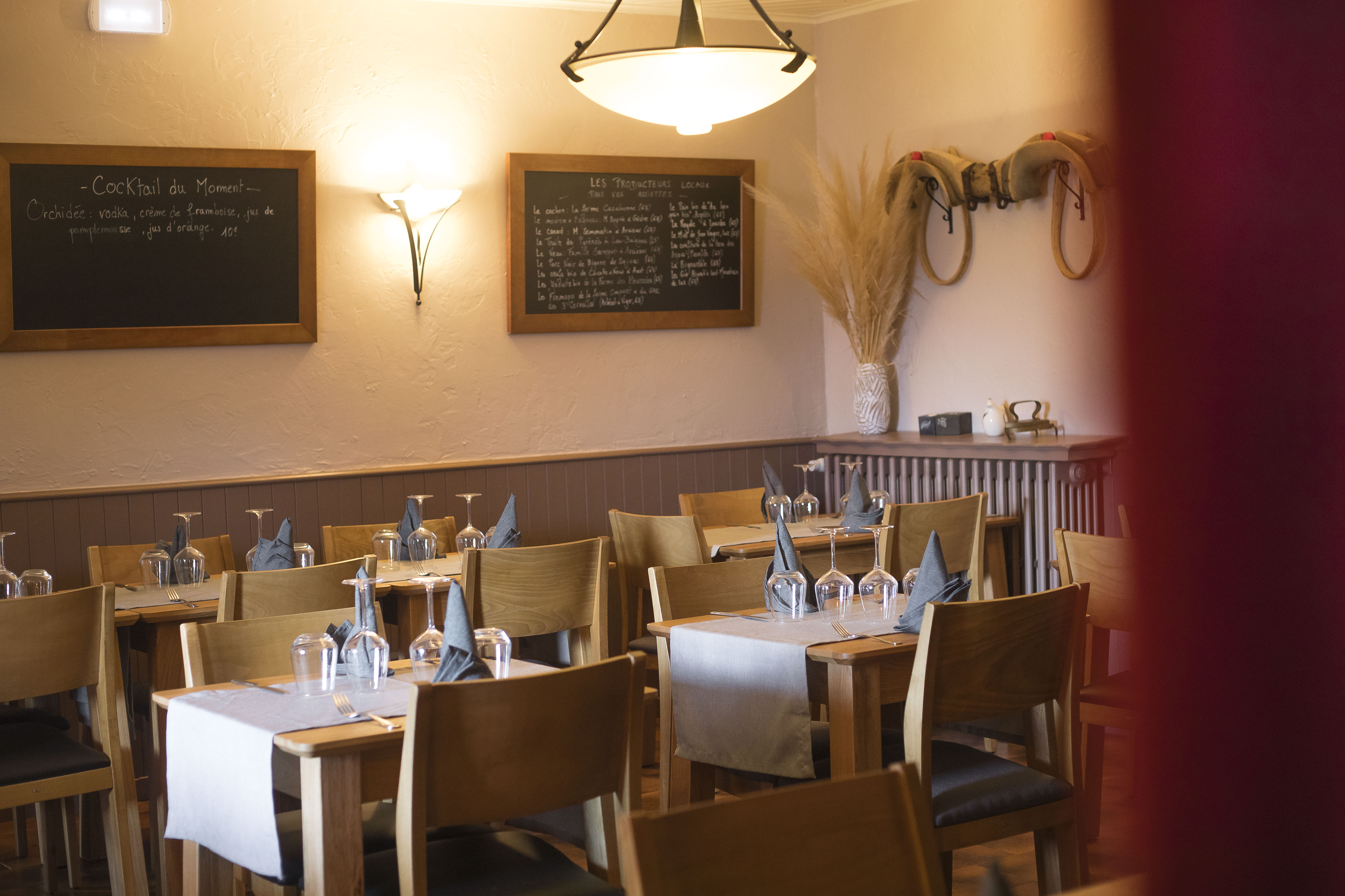 L’auberge peut accueillir environ 35 personnes dans les deux salles de restaurant ou sur la terrasse. Nous vous proposons un « menu carte » à 38€ ou au choix entrée à 14€, plats à 20€ et desserts à 8€. Une carte gourmande où se côtoient plats traditionnels et plats plus modernes est aussi proposée par le chef.