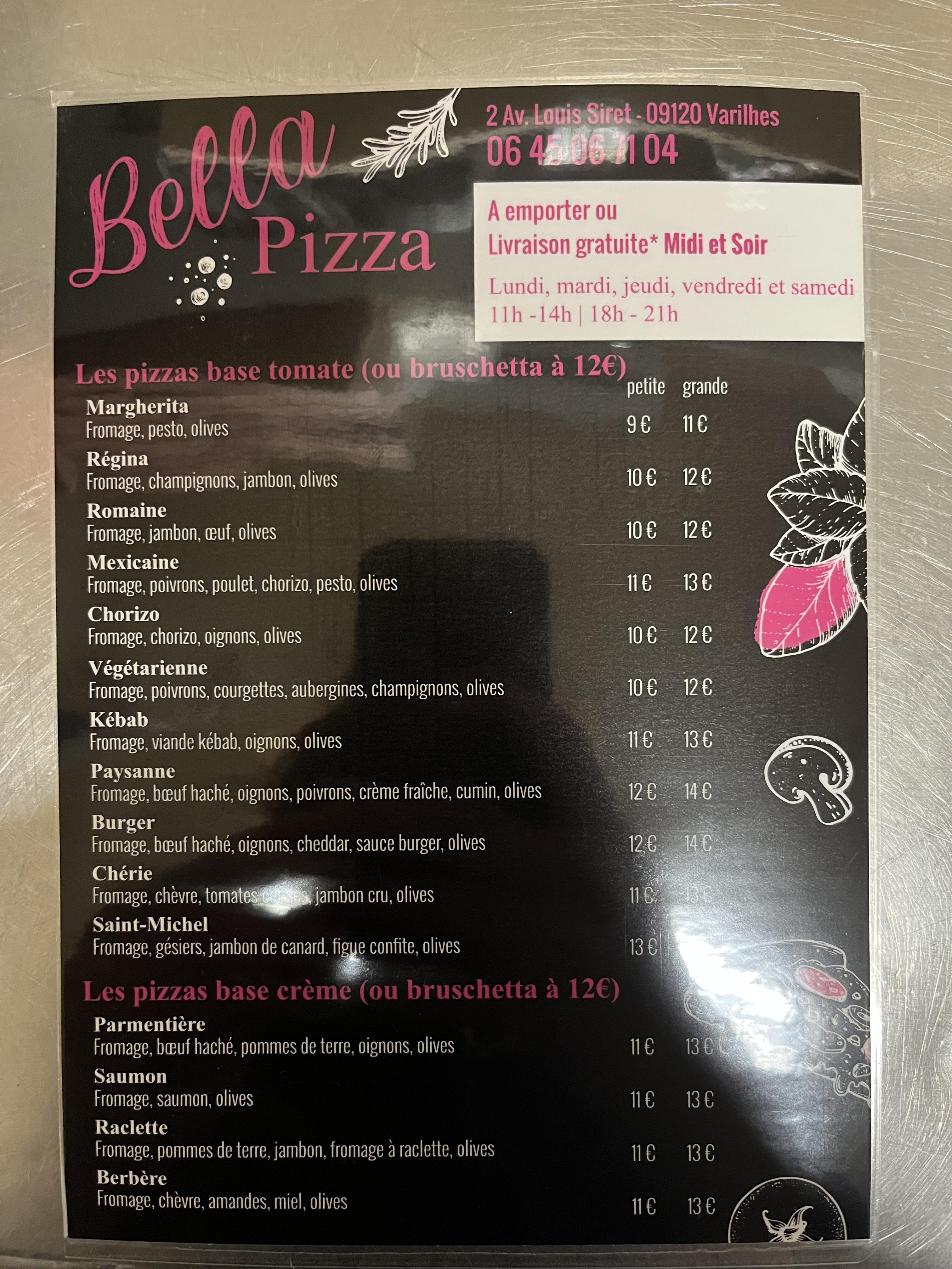 Vous cherchez un endroit pour déguster une délicieuse pizza à Varilhes ? Bella Pizza est l’adresse qu’il vous faut ! Vous pourrez déguster votre pizza sur place ou l’emporter pour la savourer chez vous. Alors ne tardez plus, venez découvrir Bella Pizza !
