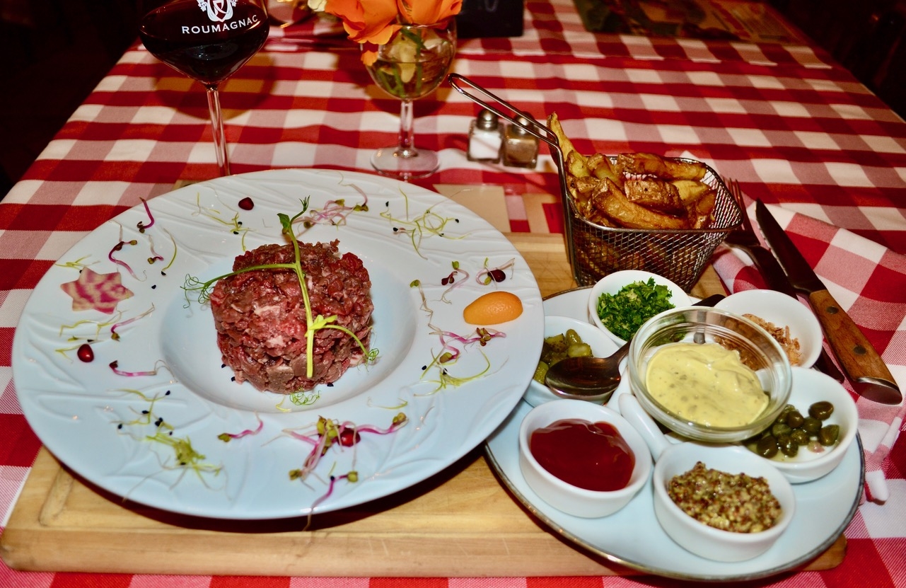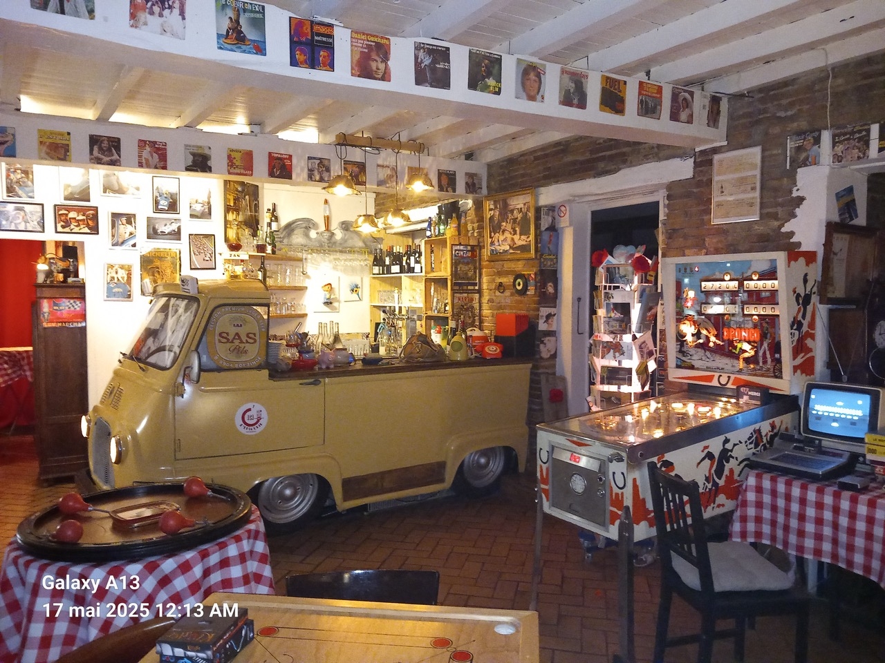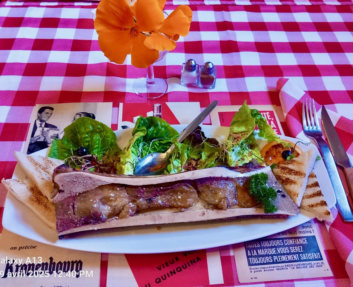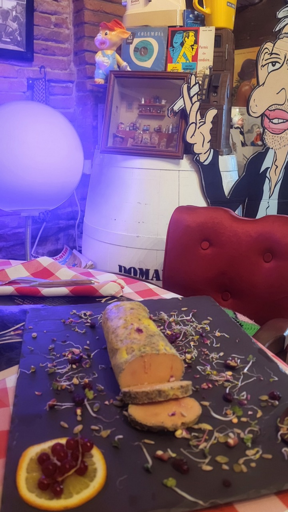 Le restaurant est décoré avec goût, les poutres en bois apparentes et la cheminée qui crépite qui donnent envie de rester à l’intérieur confortablement installé dans un environnement vintage des années 60/70 . Idéal si vous êtes à la recherche d’un endroit cosy et chaleureux, vous allez adorer partager un repas de recettes traditionnelles. Les nappes vichy donnent un air de guinguette ! Dans la salle, jouez au billard Nicolas.