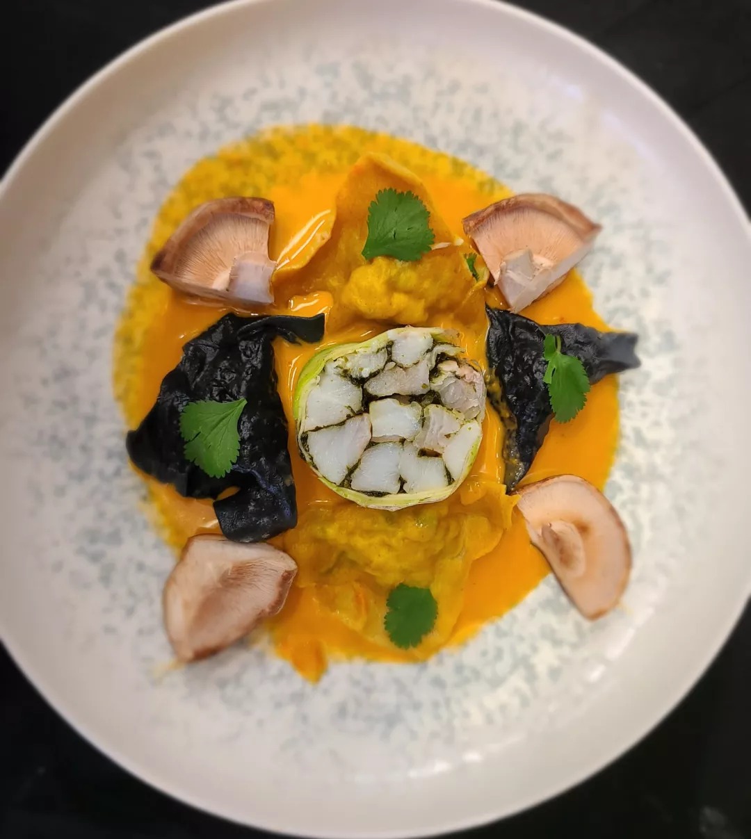 Médaillon de cabillaud et ses ravioles au curry rouges et champignons shitake – © @ChezTufÀ propos