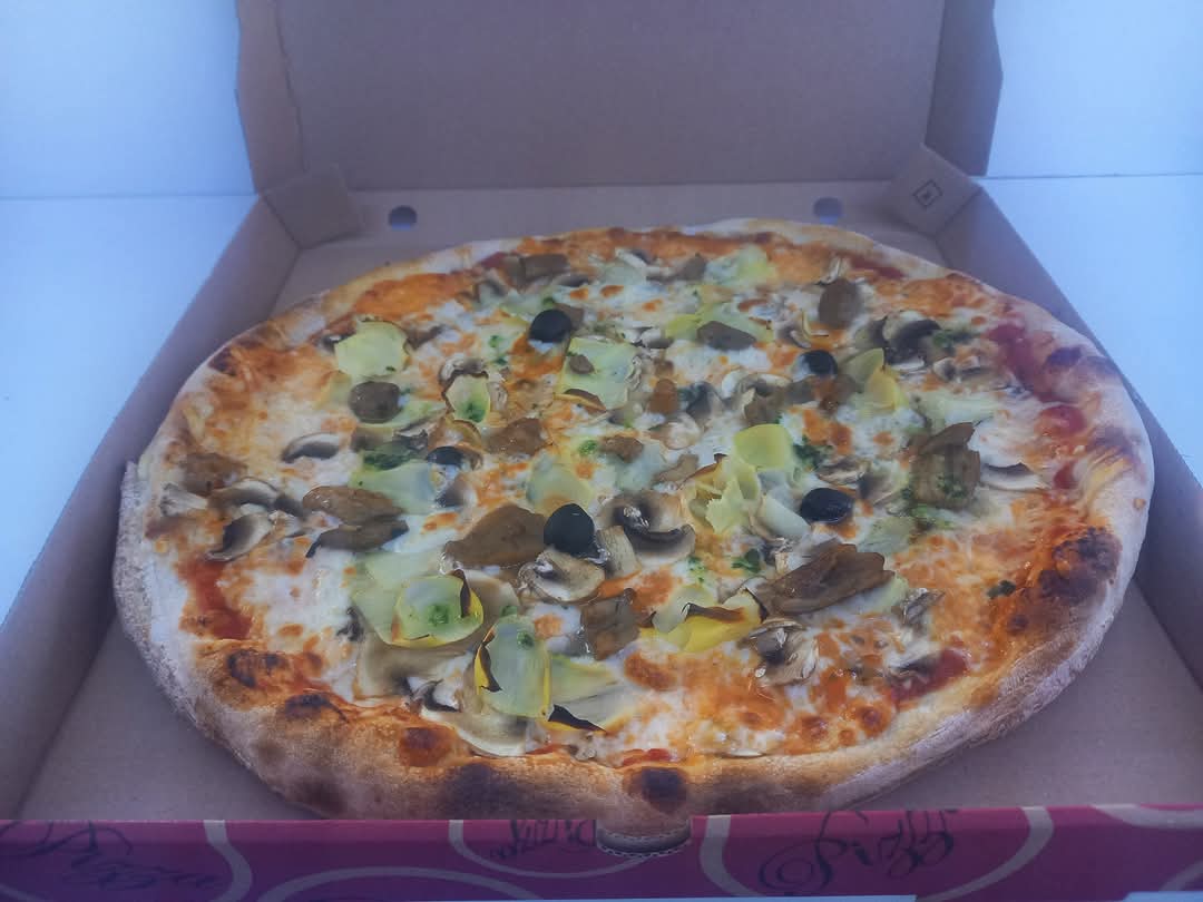 Pizza à emporter, depuis l’aire de covoiturage de Gaillac-Brens.