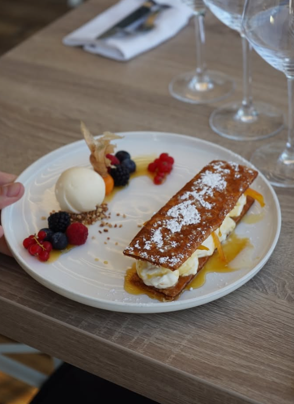La carte s’exprime notamment à travers une ardoise mettant à l’honneur la pêche locale du jour, travaillée selon l’inspiration du chef et la disponibilité des produits.