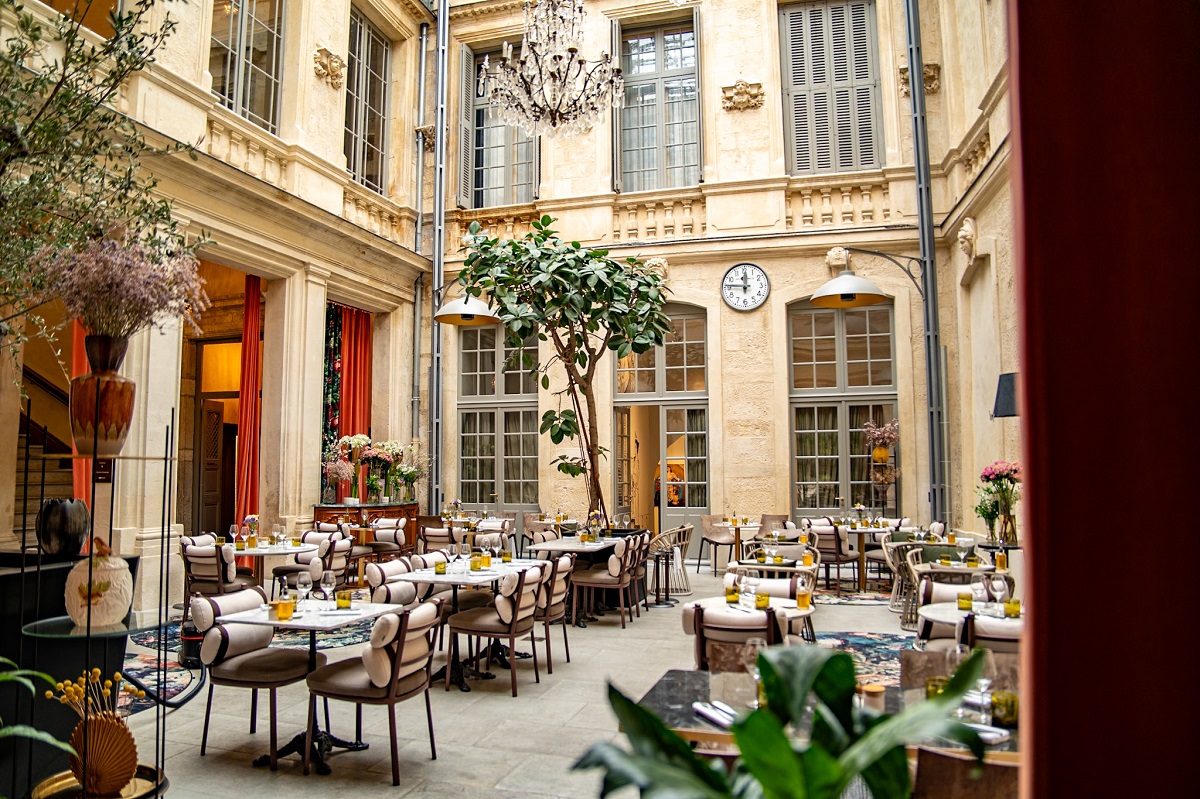 On vous accueillera tous les jours, au déjeuner ou au dîner, des clients sur la plus ancienne place de Montpellier, dans le majestueux patio sous verrière ou encore dans le bar du premier étage. Carte bistronomique filtrant entre mer et terre. Cuisine inspirée émoustillée par la rencontre des saveurs et épices d’ailleurs. Elle déroule le terroir authentique généreux et défile en cuisson parfaitement maîtrisée, en associations équilibrées, en création pointue.