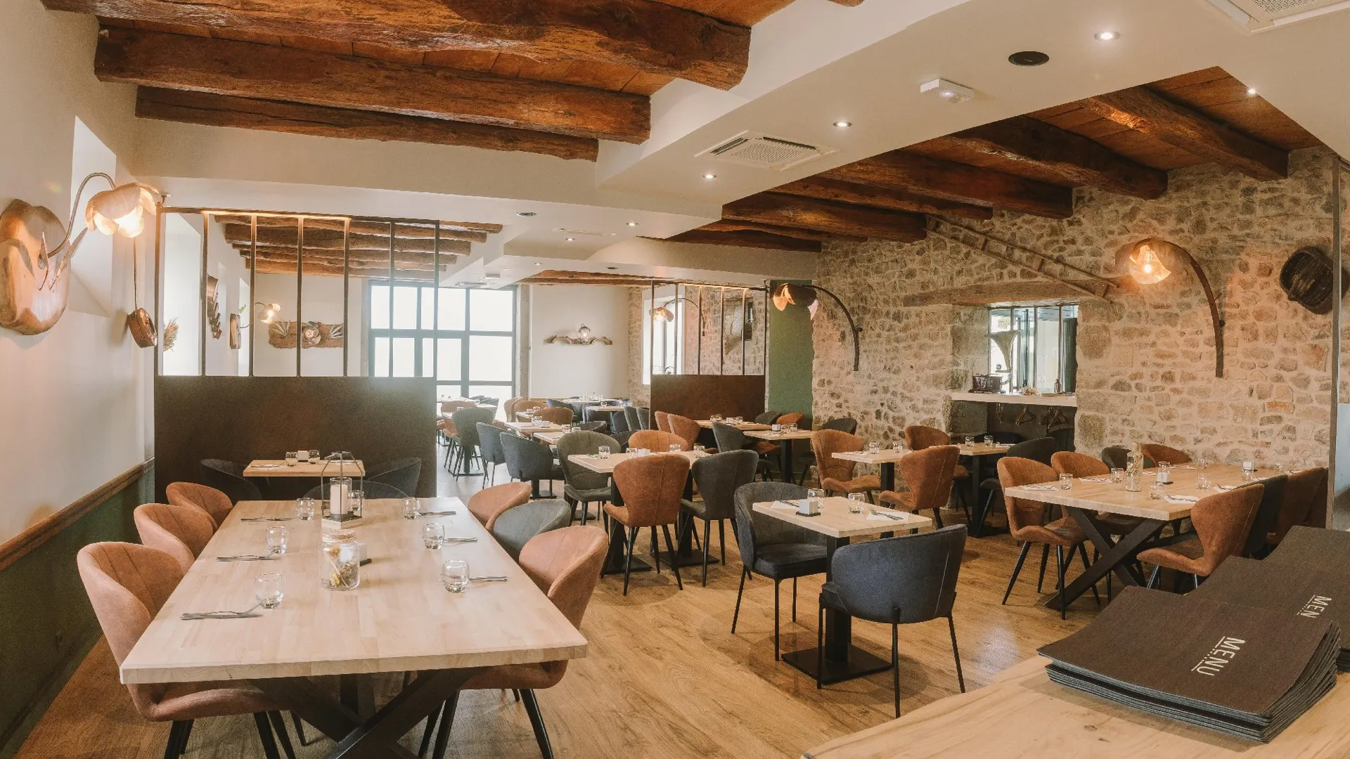 Laissez-vous séduire par notre cuisine traditionnelle où l’attention est portée sur les produits locaux et sur le circuit court, mis en valeur par notre chef Mathieu et son second Remi.