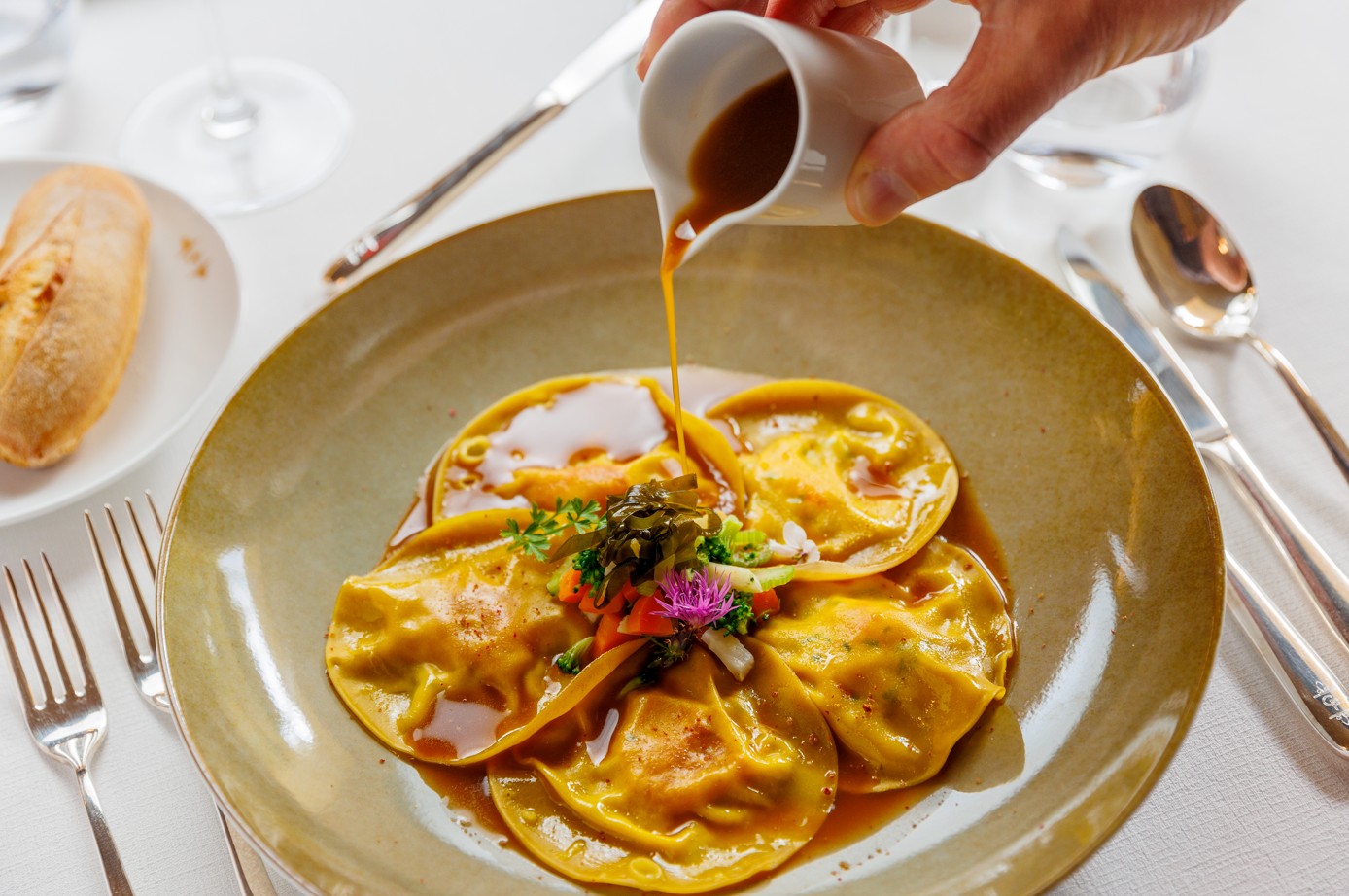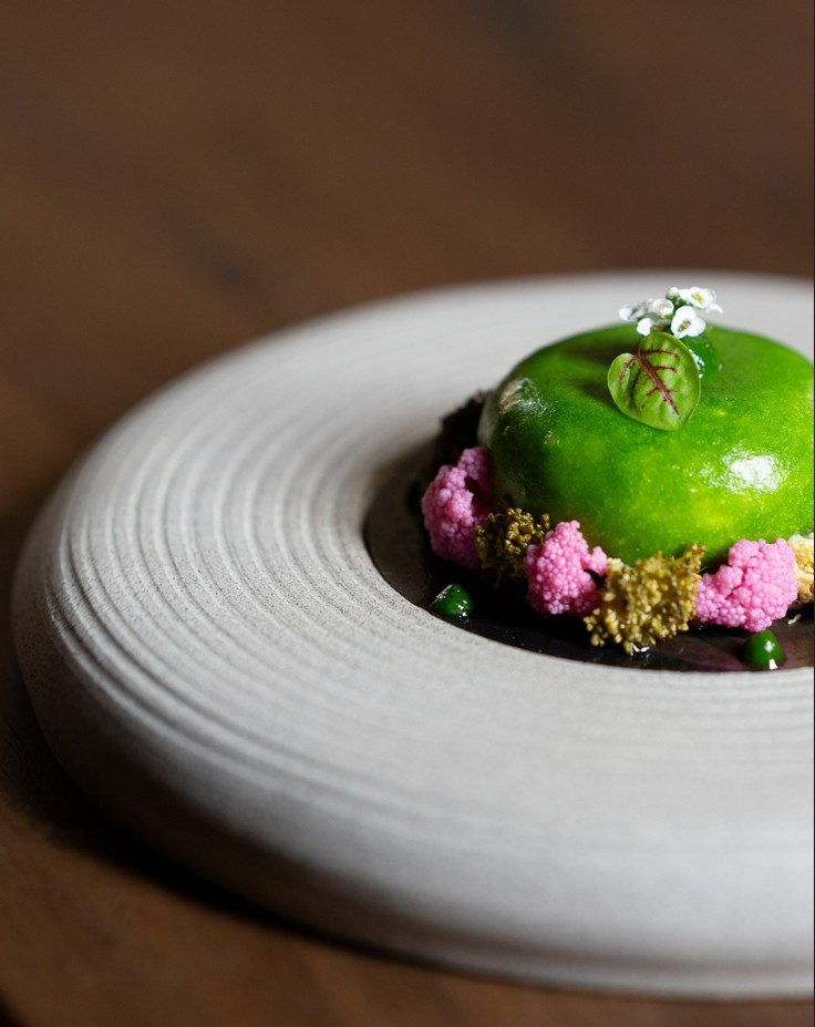 Au 1818, restaurant gastronomique du Château de Pondres, le chef Jean-Baptiste Couturier signe une cuisine moderne et affirmée, profondément ancrée dans le Sud de la France et ouverte sur la Méditerranée. Les classiques de la gastronomie sont revisités avec créativité sans jamais être trahis : la bouillabaisse déconstruite qui garde l’âme de la rade des côtes, pigeon en deux services où la cuisson sous-vide exalte la chair avant que la peau ne craque sous la salamandre, une sphérification d’olive de Nyons qui éclate comme un souvenir d’enfance.