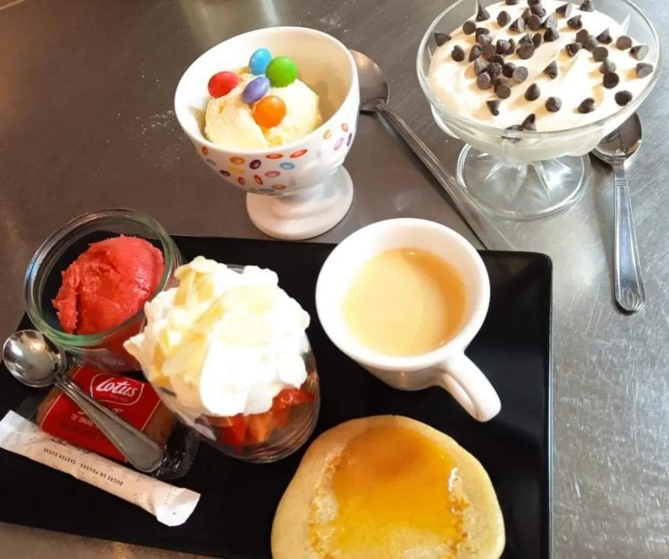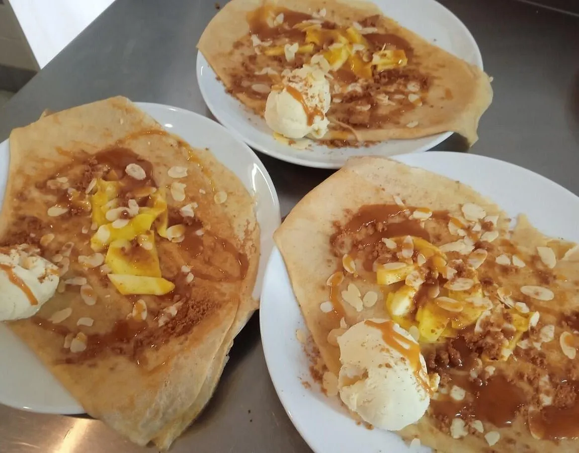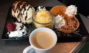 En dessert, crêpes, glaces, desserts du jour, smoothies.