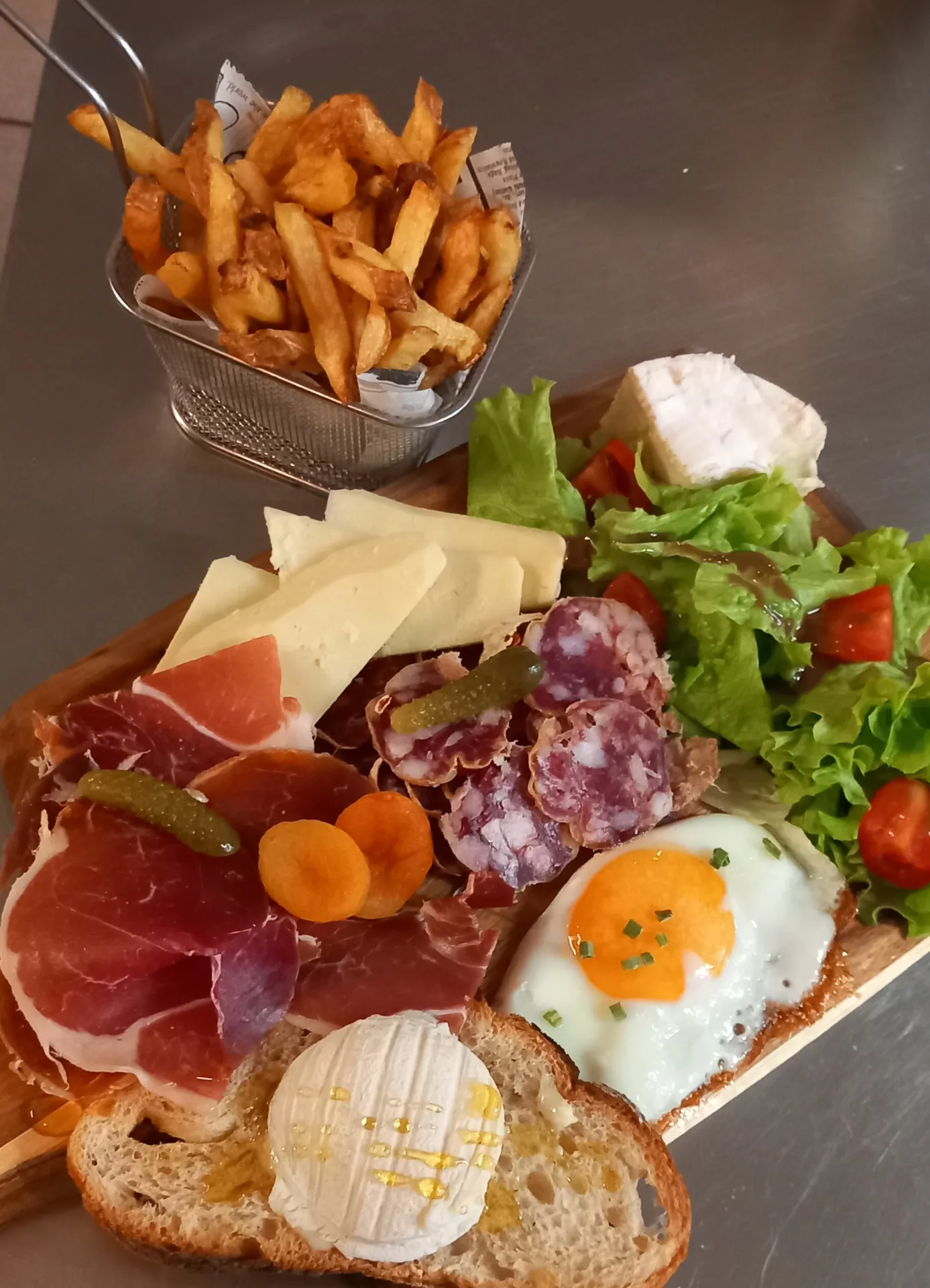 Burgers frites maison, bavette, galettes, salades, assiette gourmande…