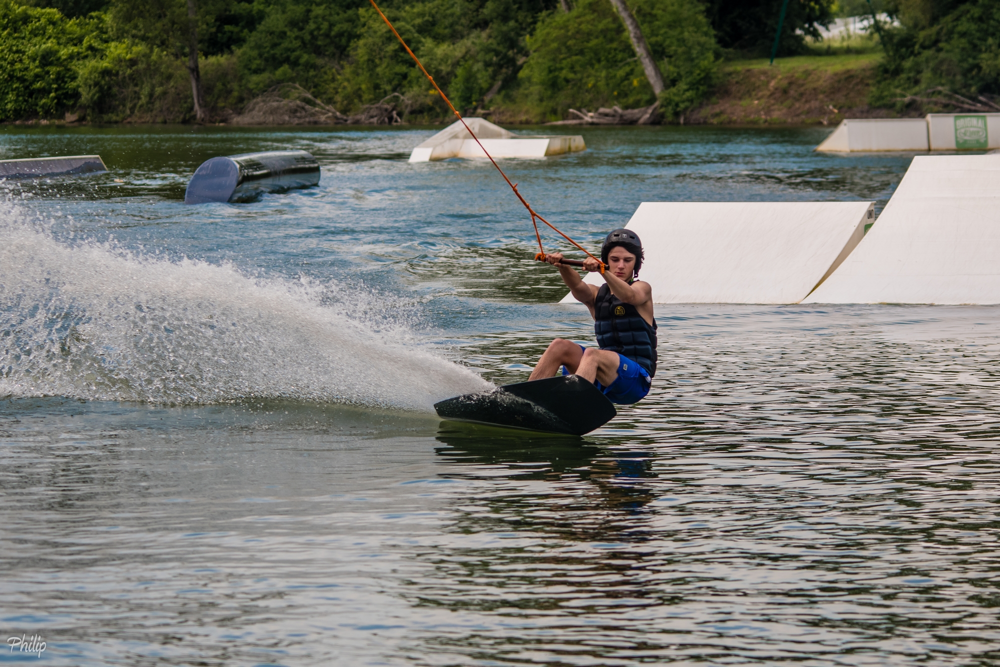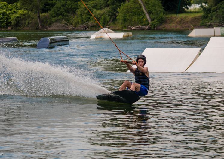 Il y a deux lignes de téléskis nautiques en aller-retour avec 6 modules évolutifs : une pour les débutants et une pour les plus confirmés.