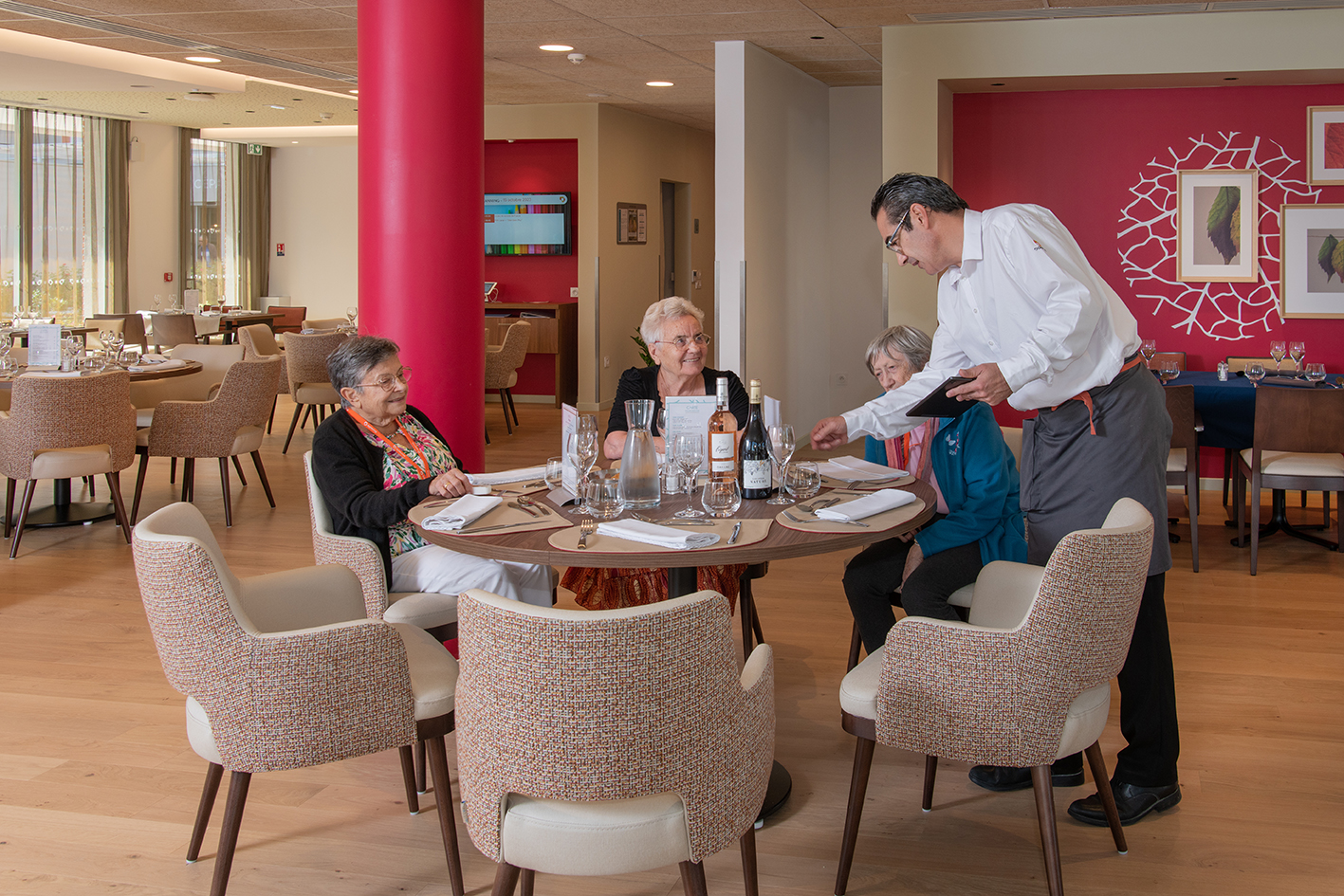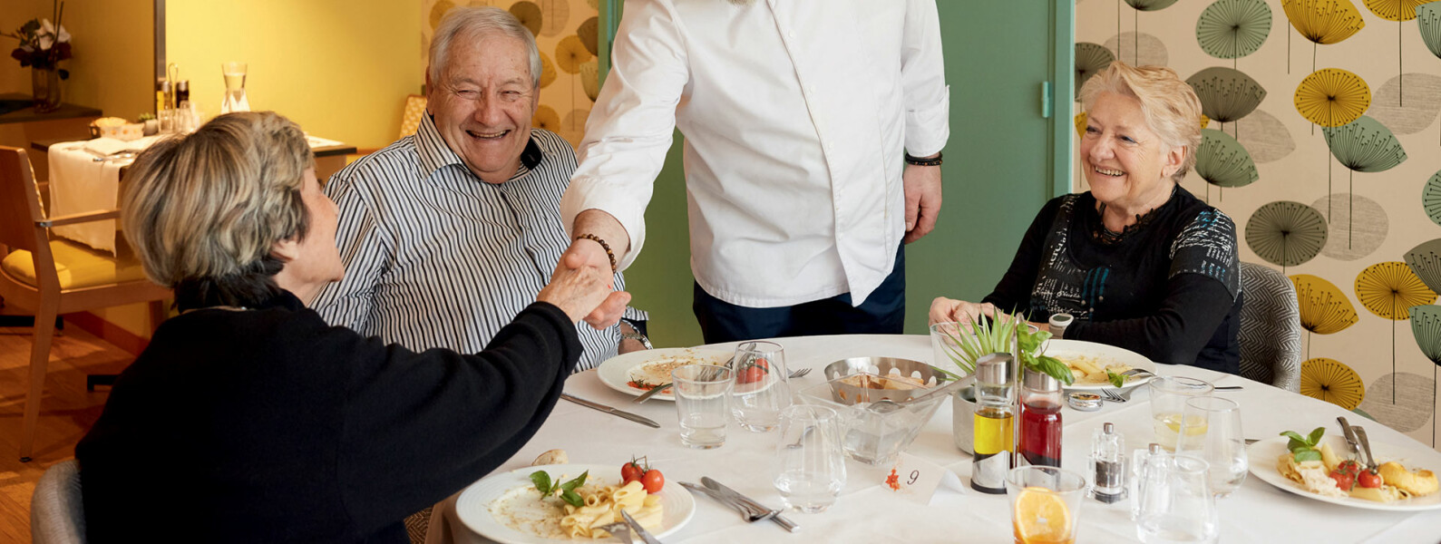 Accueil : Le restaurant fait partie d’uns résidence service senior adaptée senior autonomes.