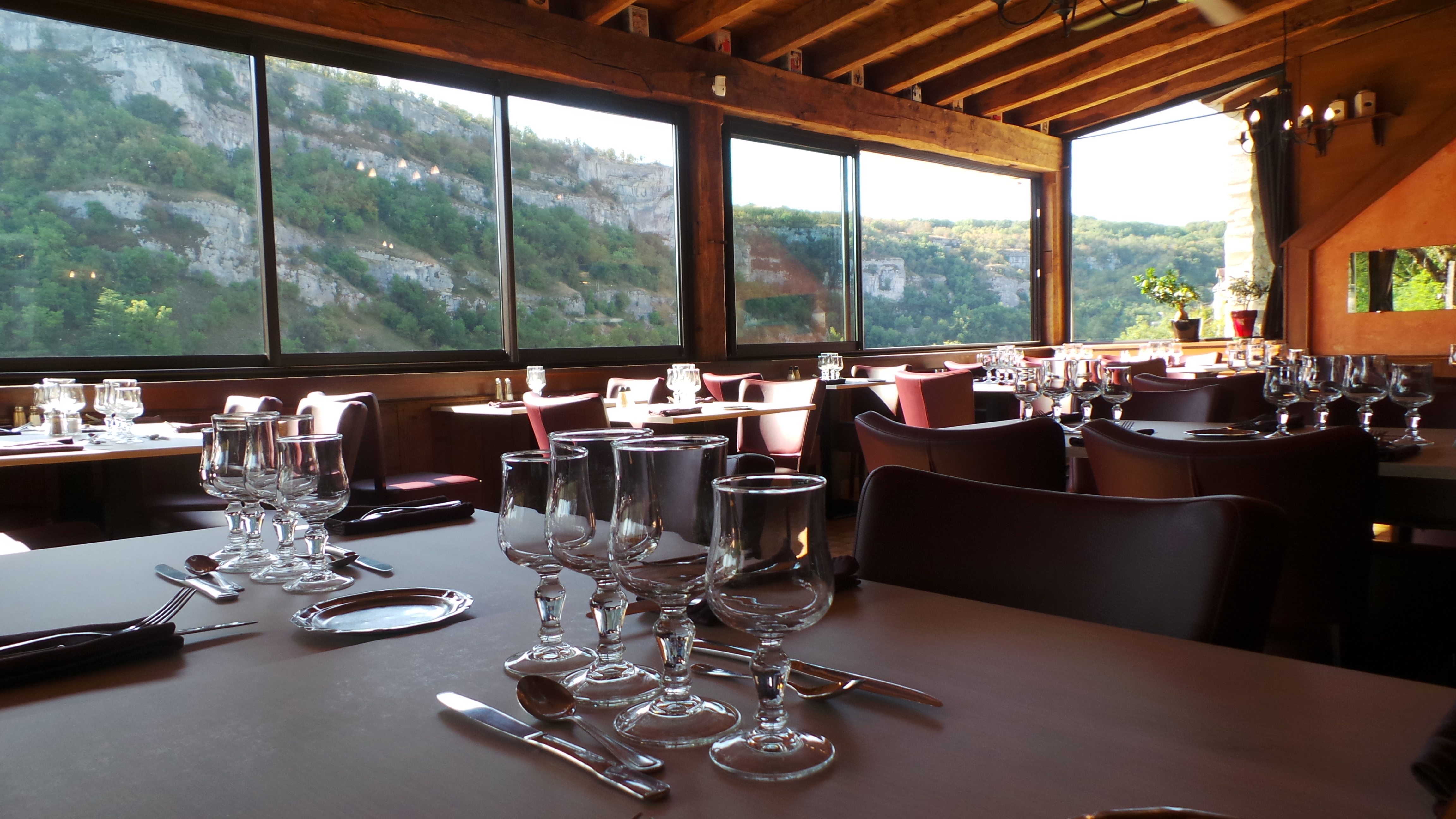 Dans un cadre rustique et agréable avec une vue panoramique sur le canyon de l’Alzou, Le chef, Emmanuel Vernillet, vous fera découvrir ou redécouvrir la gastronomie et les plats du terroir à travers ses spécialités : le confit de canard, le cassoulet maison, l’omelette aux cèpes et sa tartiflette au fromage de chèvre « Rocamadour » A.O.P…. Pour accompagner tous les plats, le chef vous propose une large sélection de vins de la région encore méconnue.