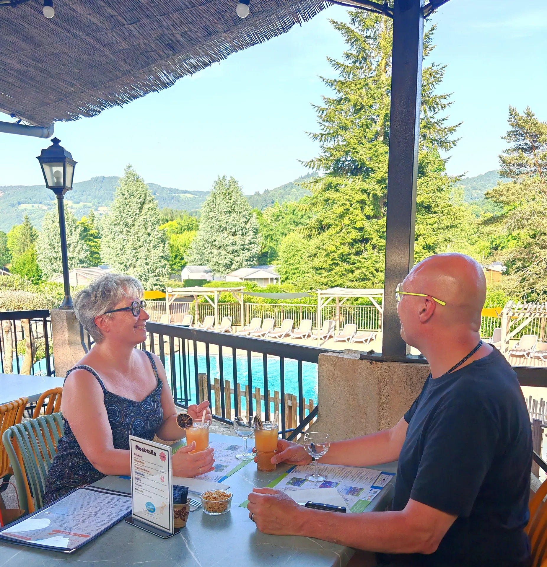 Ce restaurant avec vue sur piscine et grande terrasse vous plonge dans une ambiance estivale avec un magnifique cadre de vacances.