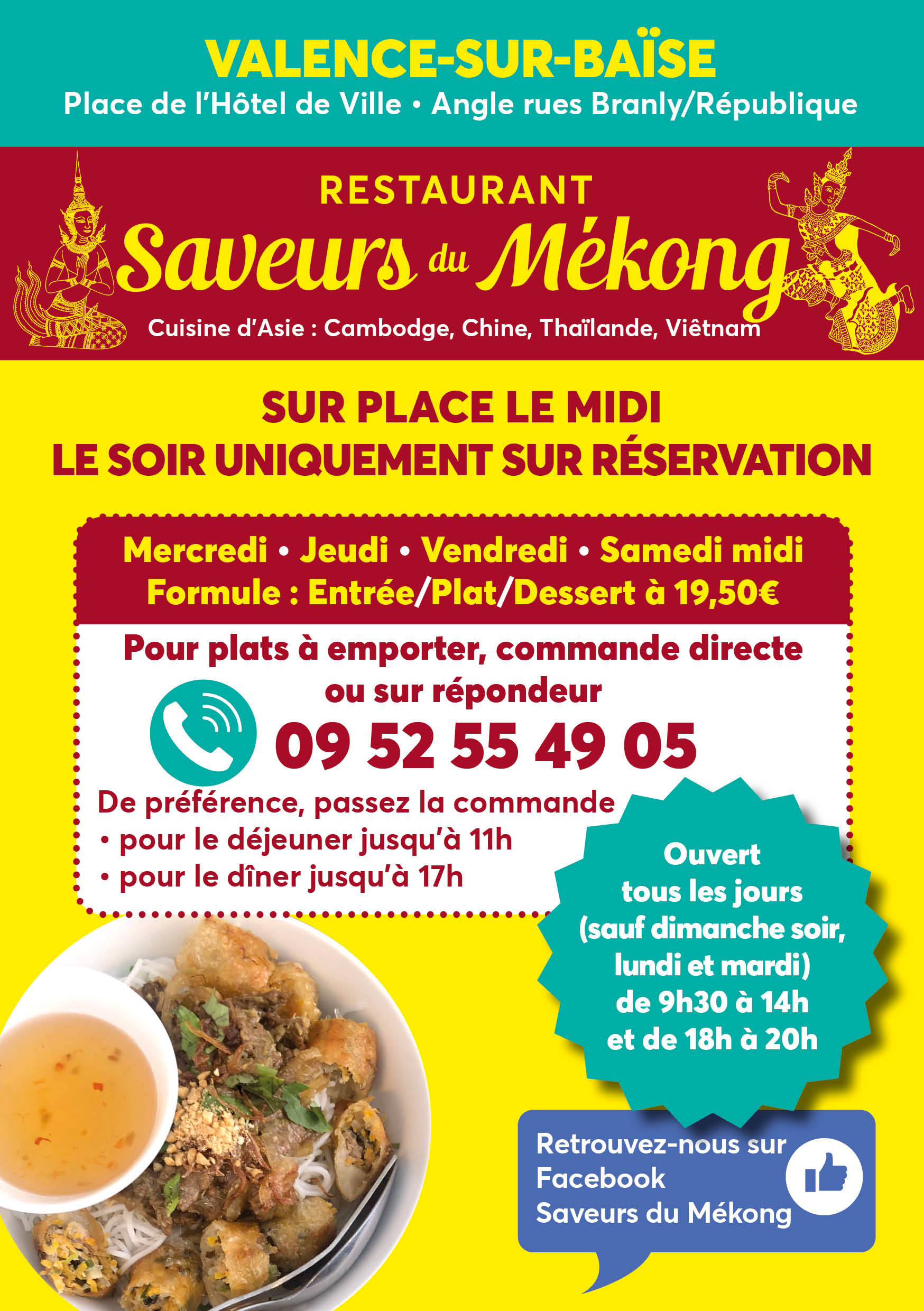 Au cœur de la Bastide de Valence-sur-Baïse souffle un air d’Asie avec les plats sélectionnés de bord de Mékong : Cambodge, Viêtnam, Thaïlande, Chine.