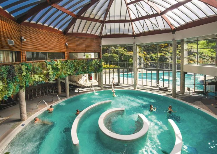 Puis, vient le moment détente et bien-être au centre de balnéo Les Bains du Rocher dans une ambiance raffinée. La lagune extérieure, tout en jeux bouillonnants, permet de se prélasser à flanc de rochers dans une eau à 38°C.