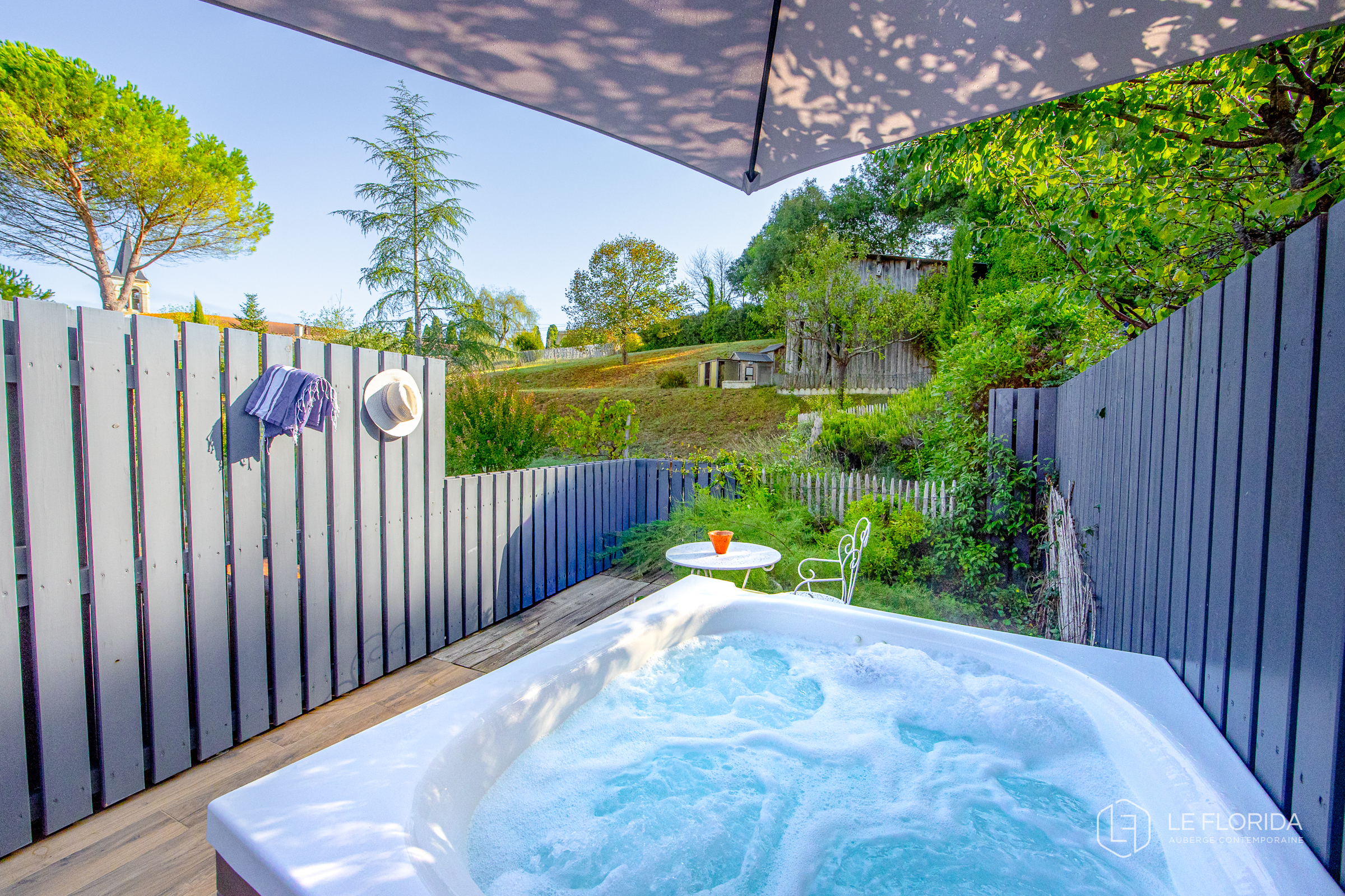 Imaginez une chambre double élégante et confortable, où chaque détail a été pensé pour vous offrir le summum du bien-être, comme un moment de détente dans votre spa jacuzzi privatif.