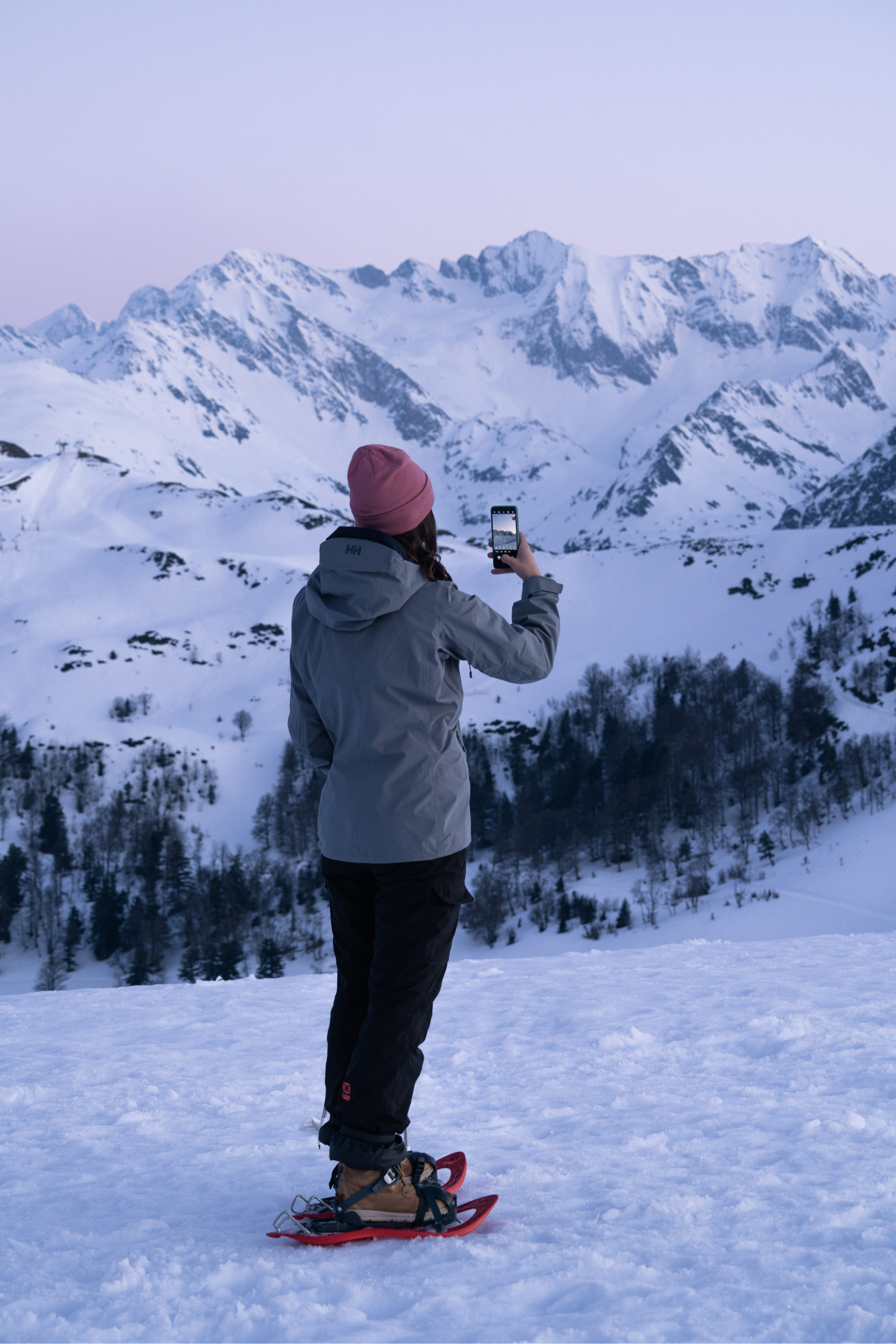 À la tombée du jour, jouez les oiseaux de nuit sur les sentiers enneigés désertés par les visiteurs. Enchaînez quelques pas chaussés de drôles de raquettes et au bout du chemin, la récompense : splendide coucher de soleil depuis les crêtes du Hautacam.
