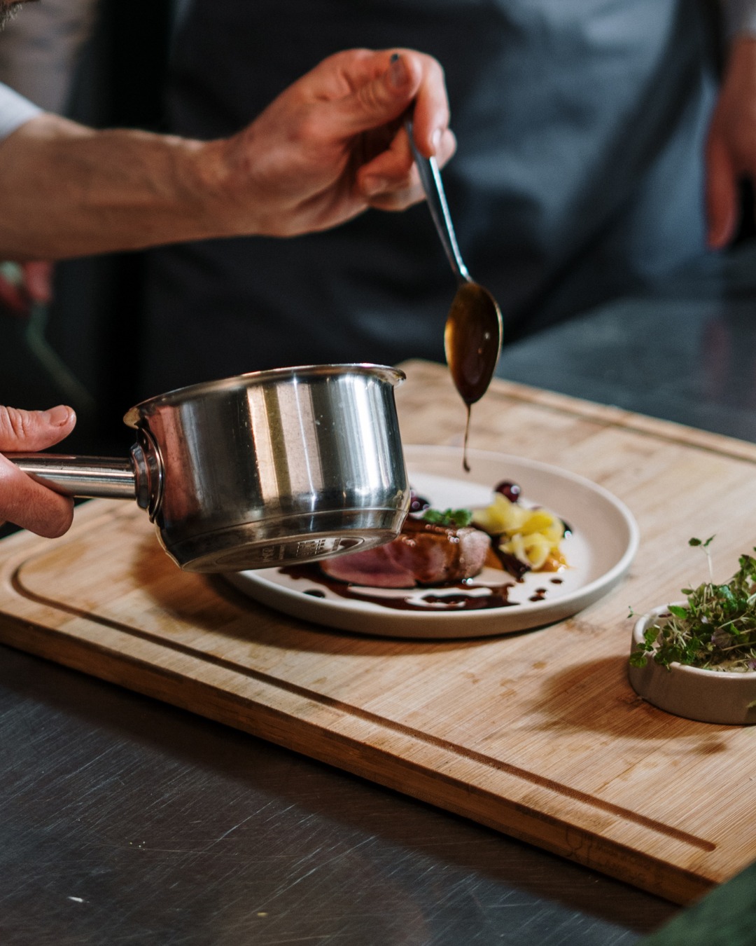 – Viande : Bœuf Wellington, duxelle de cèpes, truffes, sauce Chateaubriand