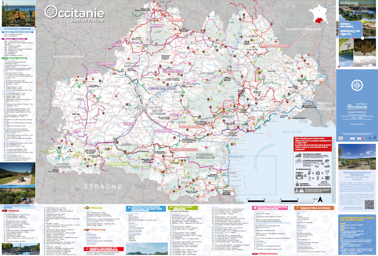 Recevez gratuitement dans votre boîte email la carte du vélo en Occitanie. Très complète, adaptée à toutes les pratiques du vélo, elle vous permet de visualiser les routes cyclosportives, les cols à vélo, les grandes traversées à VTT. A cela s'ajoutent les voies vertes, les véloroutes, les sites et bases VTT FFC partout en Occitanie, les espaces cyclosport FFC, les espaces Gravel FFV … et bien d'autres informations comme les contours des Terres de Vélo.