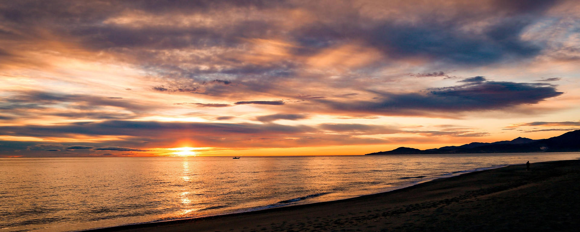 C'est en or fondu que le soleil termine sa journée à Saint-Cyprien Plage, sur la Côte Méditerranée. Les températures sont clémentes toute l'année, tant pour la baignade que pour la thalassothérapie ou les longues balades à vélo.