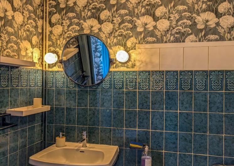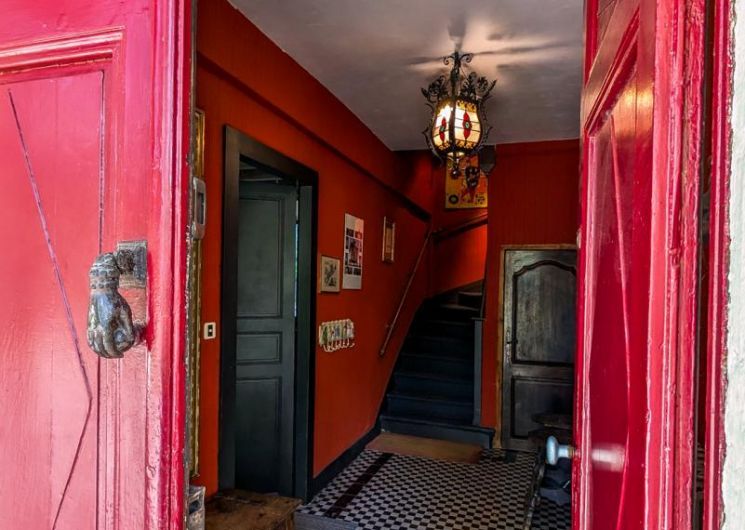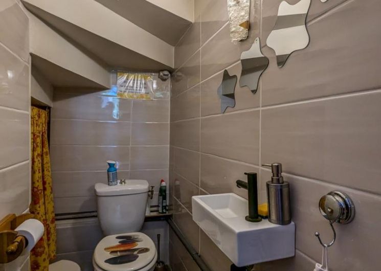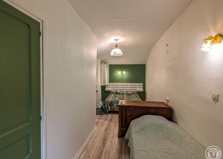 – par la cuisine (escalier raide) : chambre Céline au 1er étage (1 lit 2 personnes en 140cm + 1 lit en 90cm + lavabo + WC sanibroyeur)